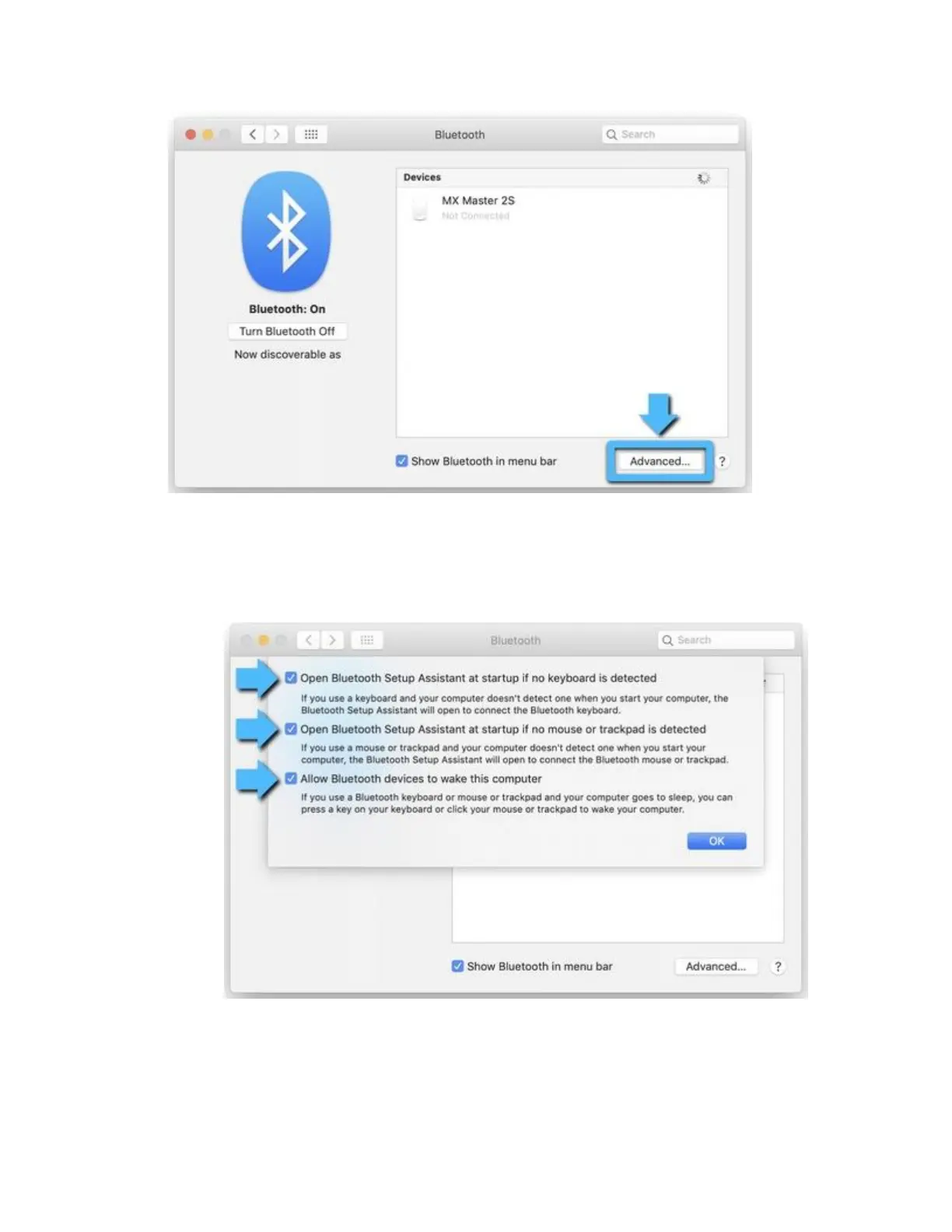 o NOTE: These options ensure that Bluetooth-enabled devices can wake your Mac