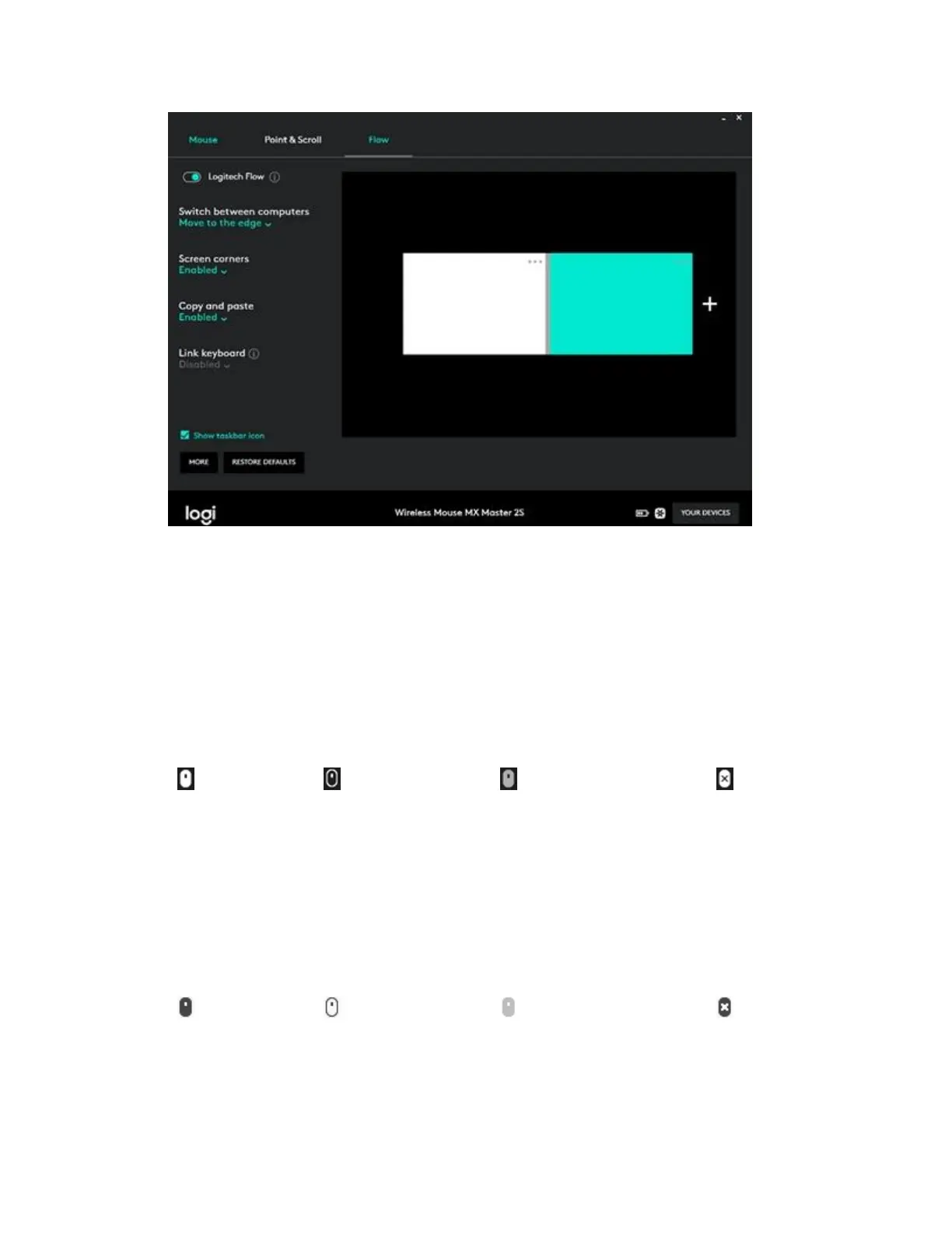 progress. It also allows you to quickly disable and re-enable Logitech Flow. The icon will