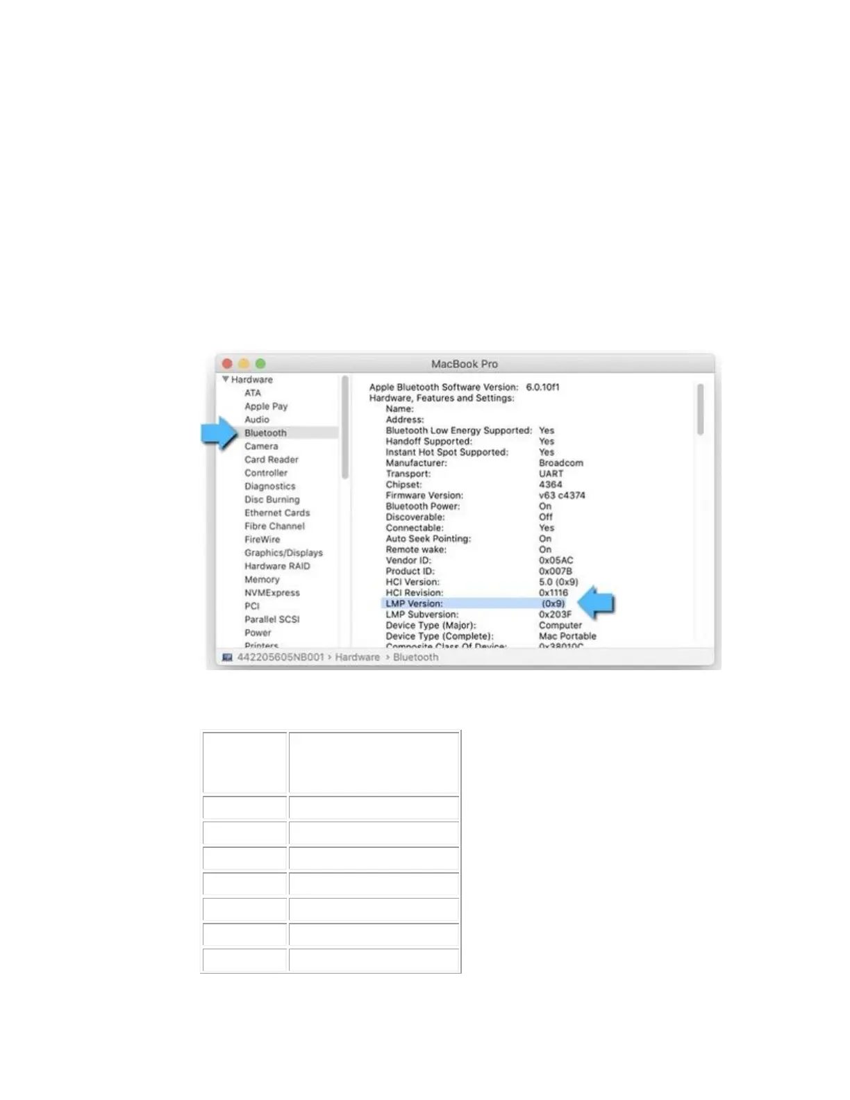 o If the value is 4.0 (0x6) or greater then the Mac supports Bluetooth Low Energy.