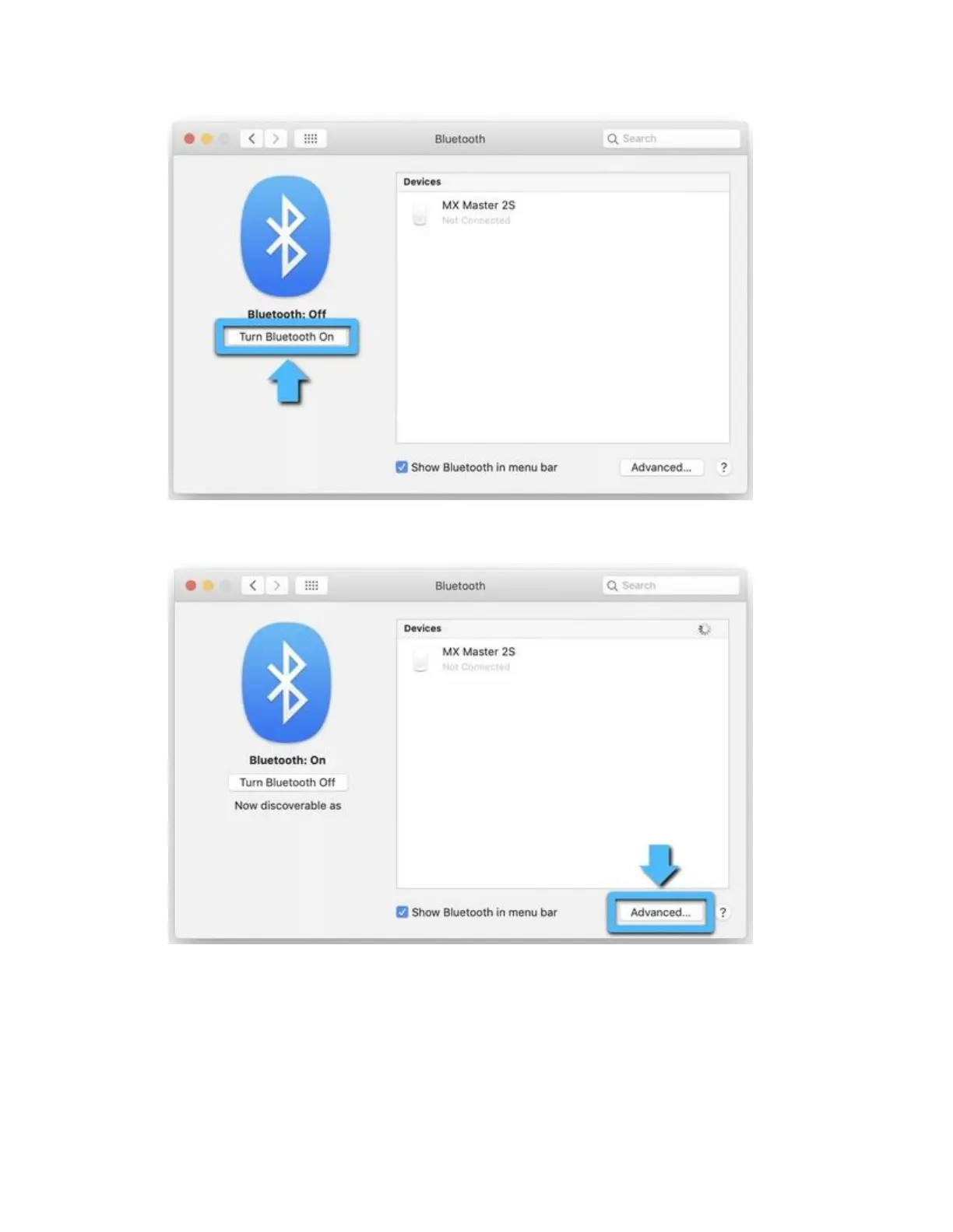 3. In the bottom-right corner of the Bluetooth Preference window, click Advanced.