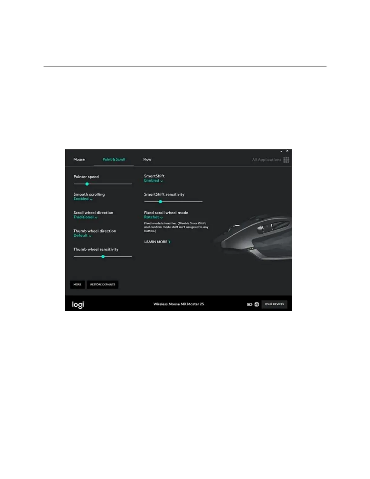 To change your pointer speed, enable or disable SmartShift, and access other scroll settings: