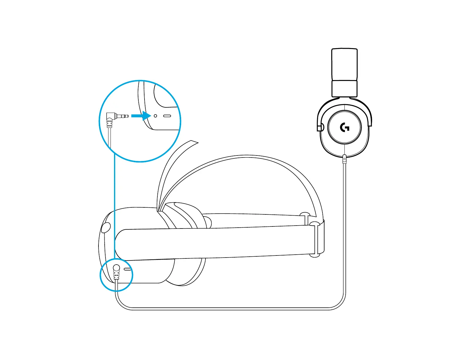Oculus Quest 2 90 3.5mm 잭을 연결합니다.