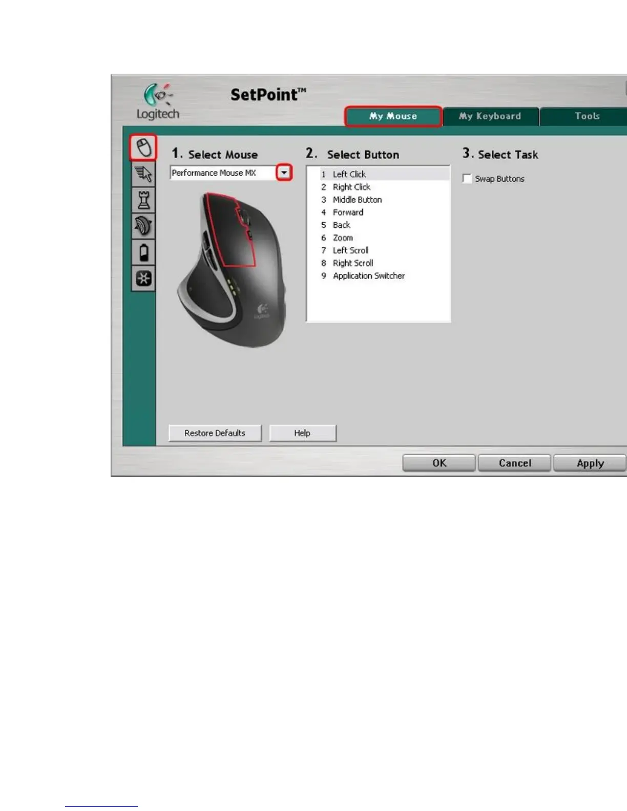 3. Select the Performance Mouse MX from the Select Mouse drop-down menu as shown