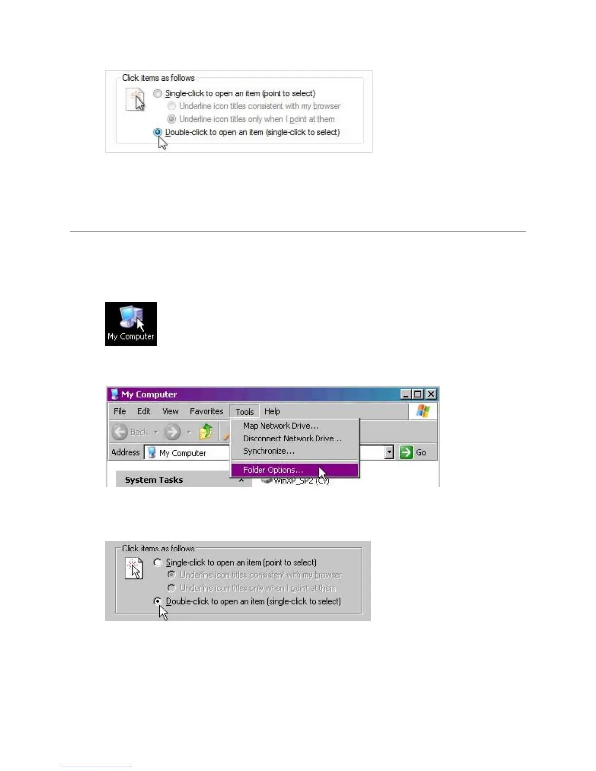 Disabling the Single-Click to open option in Windows XP