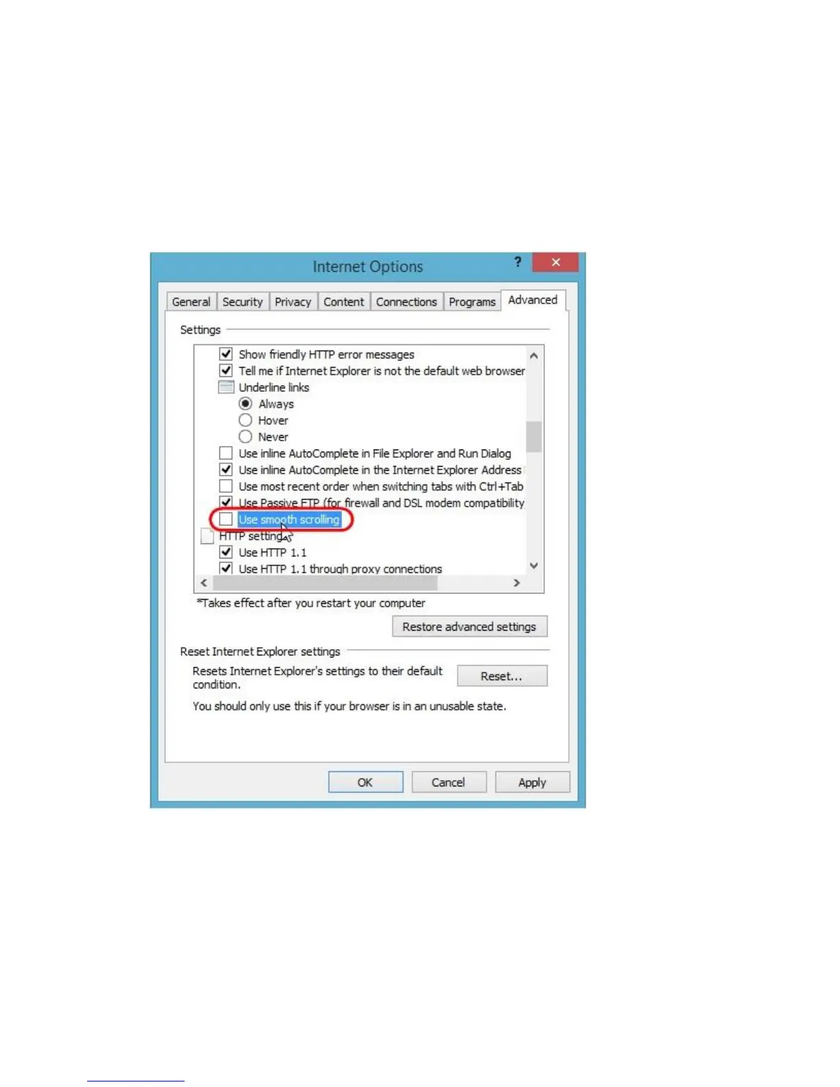 3. In the Browsing section, clear "Use smooth scrolling".