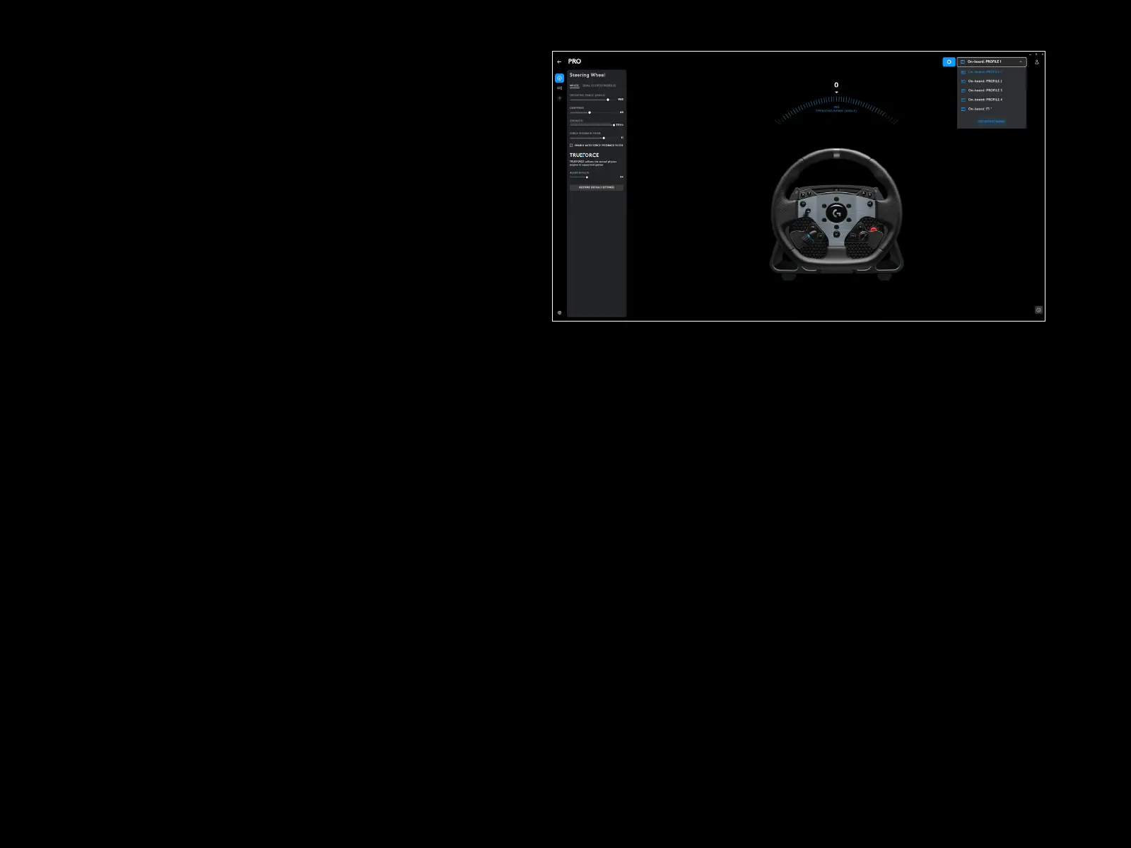 jei atidarytas vairo parametrų meniu. G HUB rodys klaidos