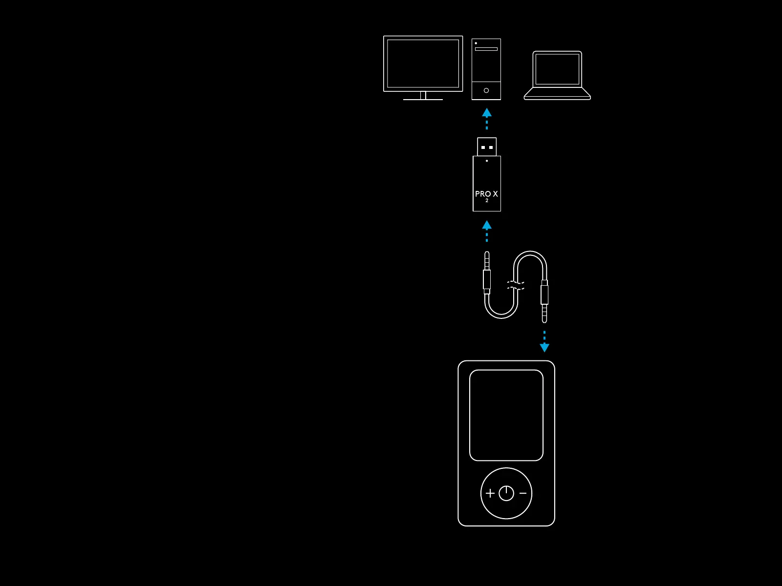 na porta de 3,5 mm da fonte de áudio que você gostaria
