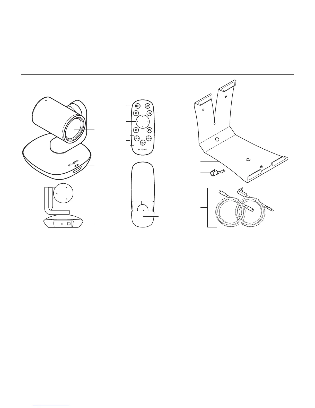 Logitech PTZ PRO CAMERA - Product Overview; Camera Identification; Remote Control Functions; Accessory Components