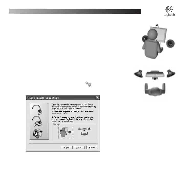 de montagem de microfone/colunas e do Assistente de sintonização de áudio que