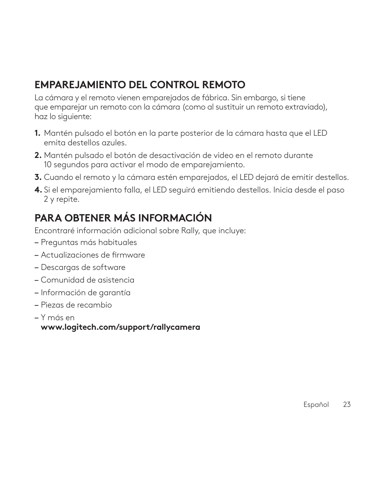 La cámara y el remoto vienen emparejados de fábrica. Sin embargo, si tiene