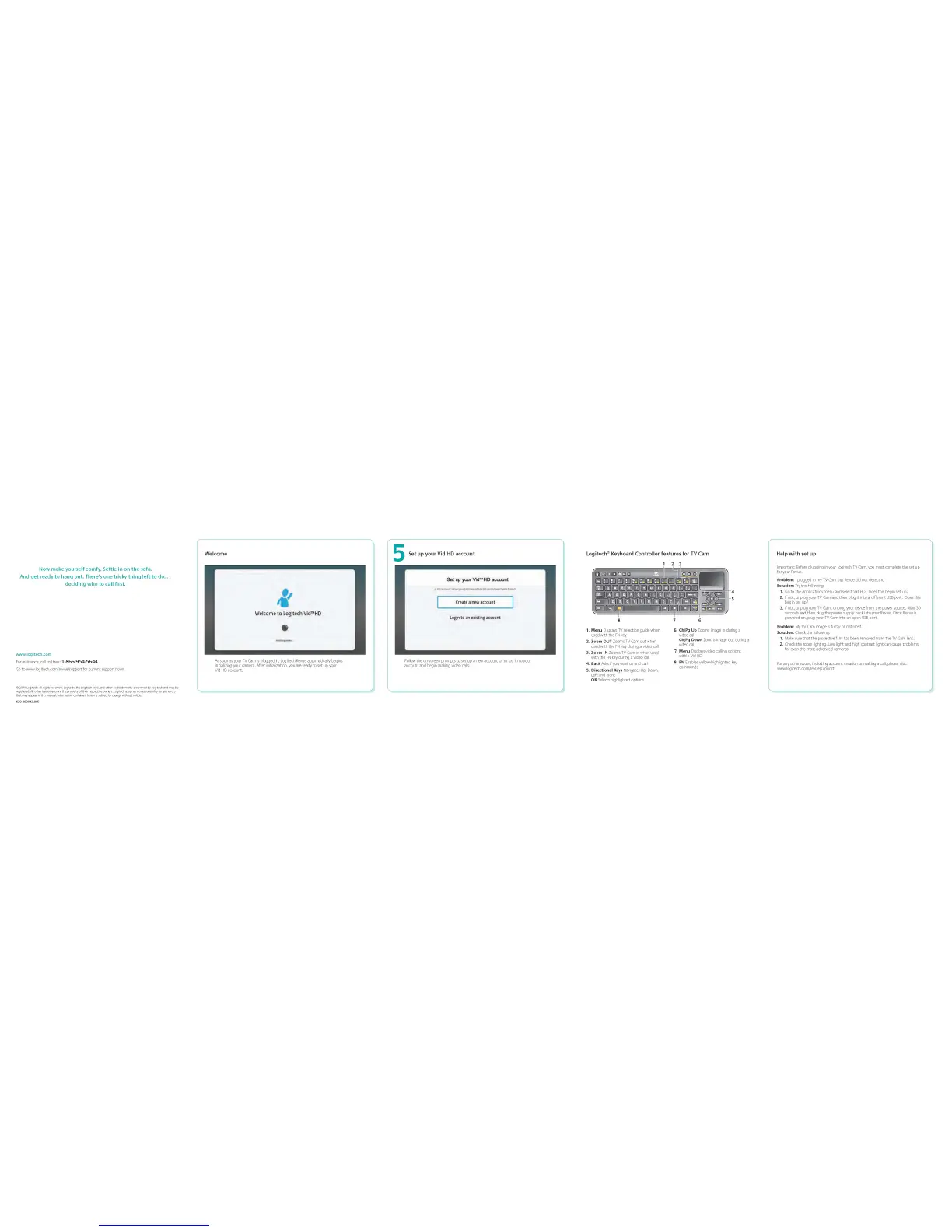 Logitech TV Cam - Vid HD Account and Features; Set Up Your Vid HD Account; Logitech Keyboard Controller Features; Help with Setup