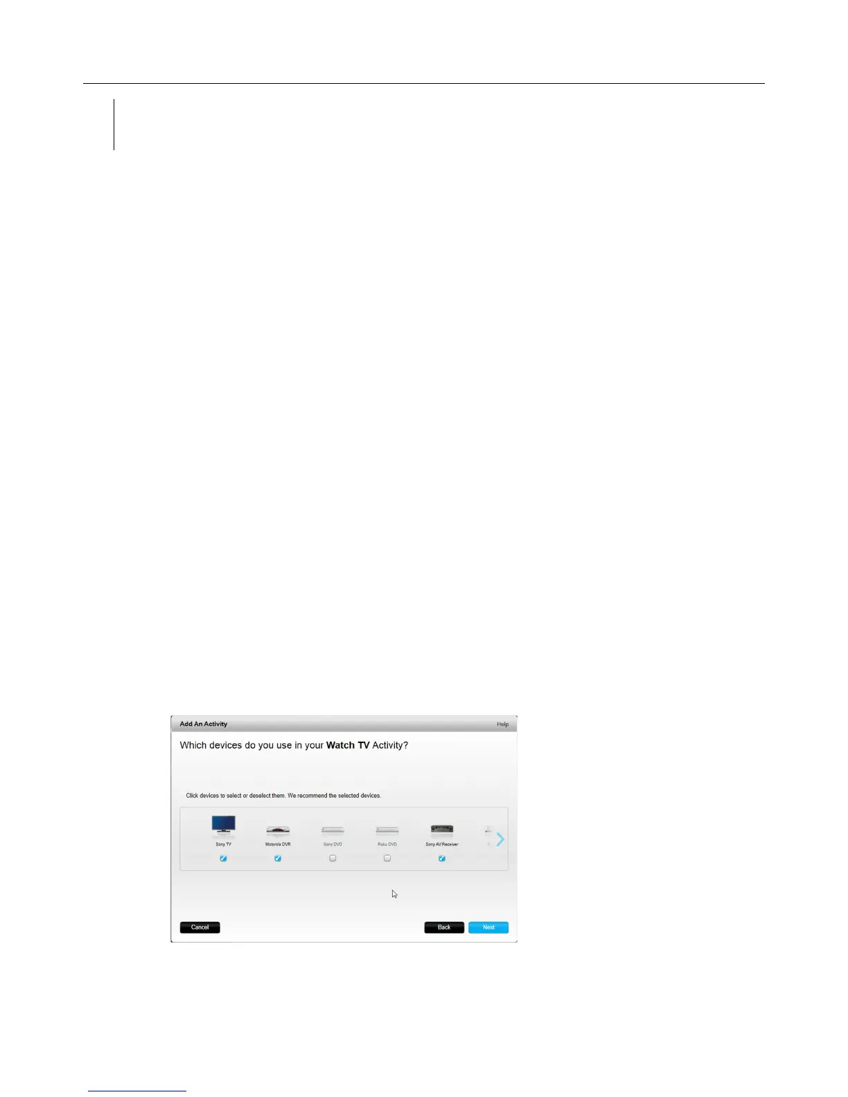 2. Choose the devices you want to use in your Activity. MyHarmony will recommend the devices you have