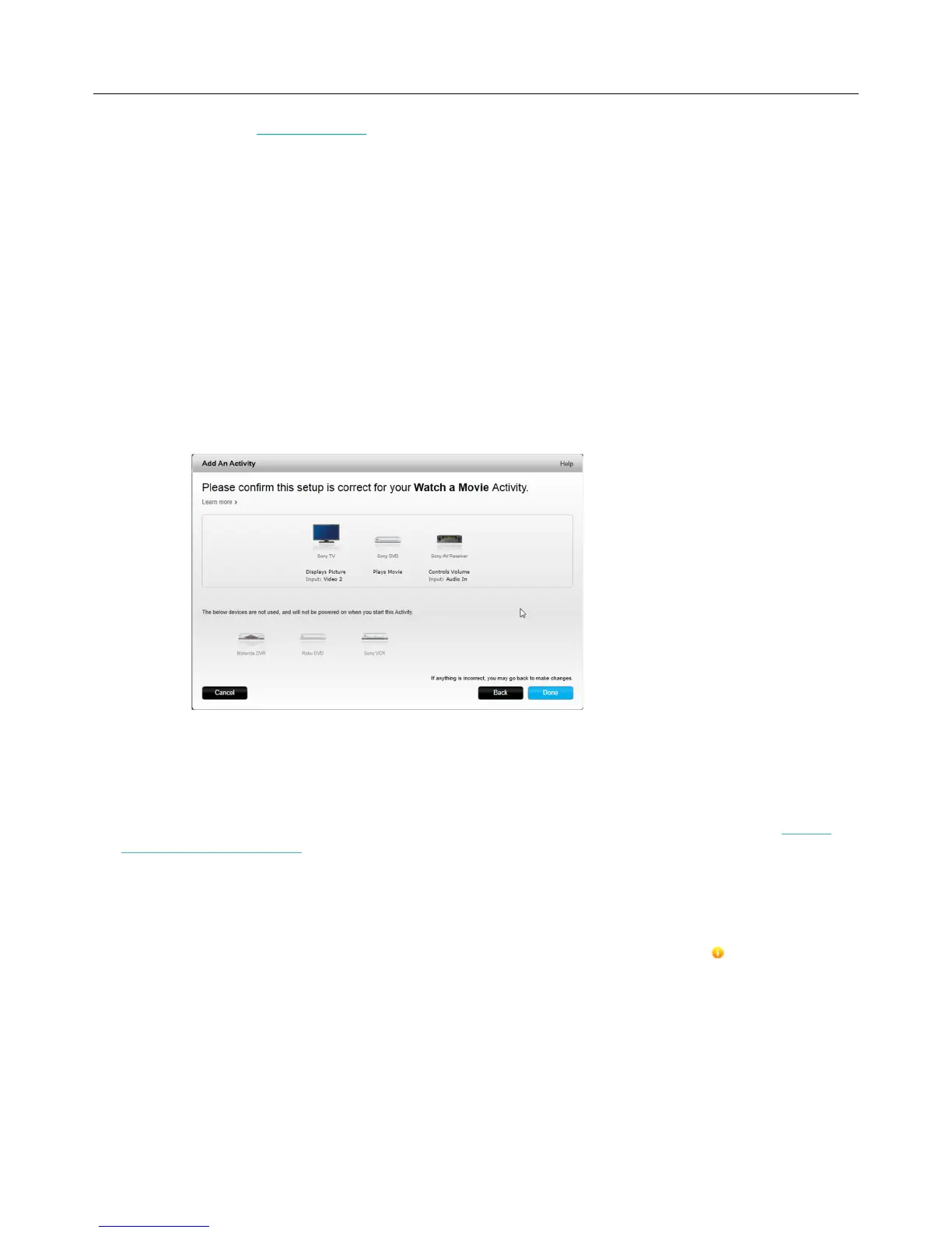 Activity types do. These may be configured manually from MyHarmony once setup is complete. Refer to How to