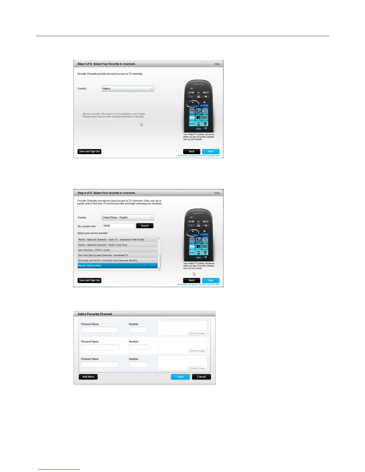 6. Click Add More to add more Favorite Channels.