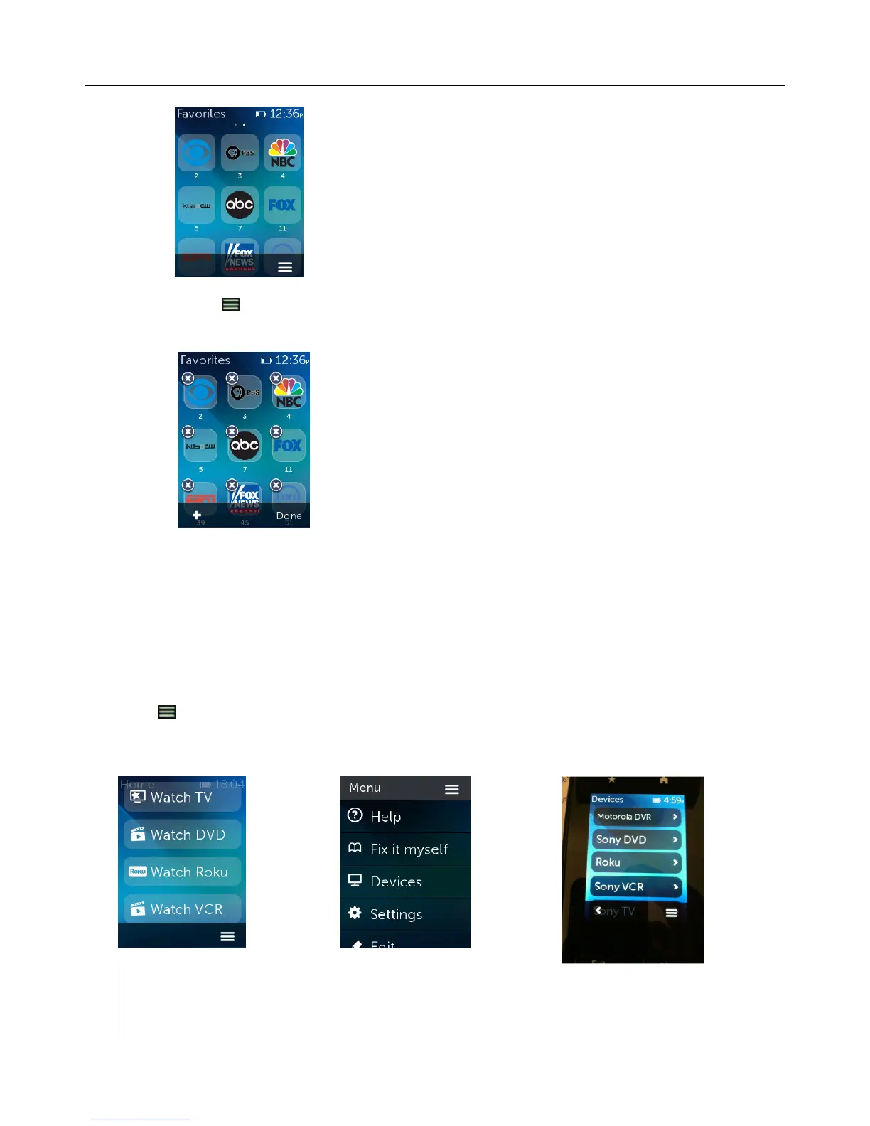 4. Tap the “X” icon on each Favorite to remove it from your Harmony Ultimate.