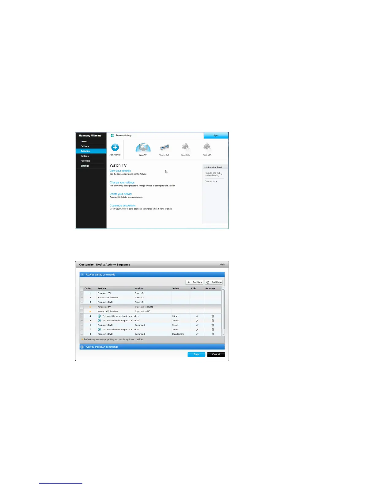 To add steps to an Activity in your MyHarmony account: