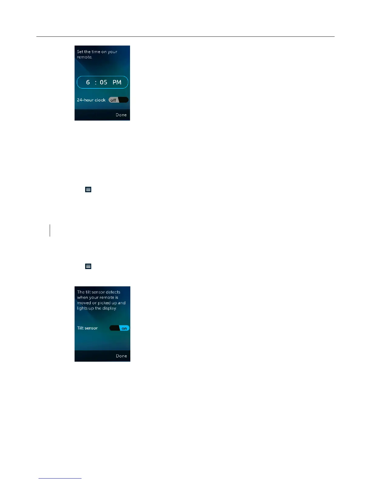 The remote display lights up when the remote control is moved. To turn off this feature, follow these steps: