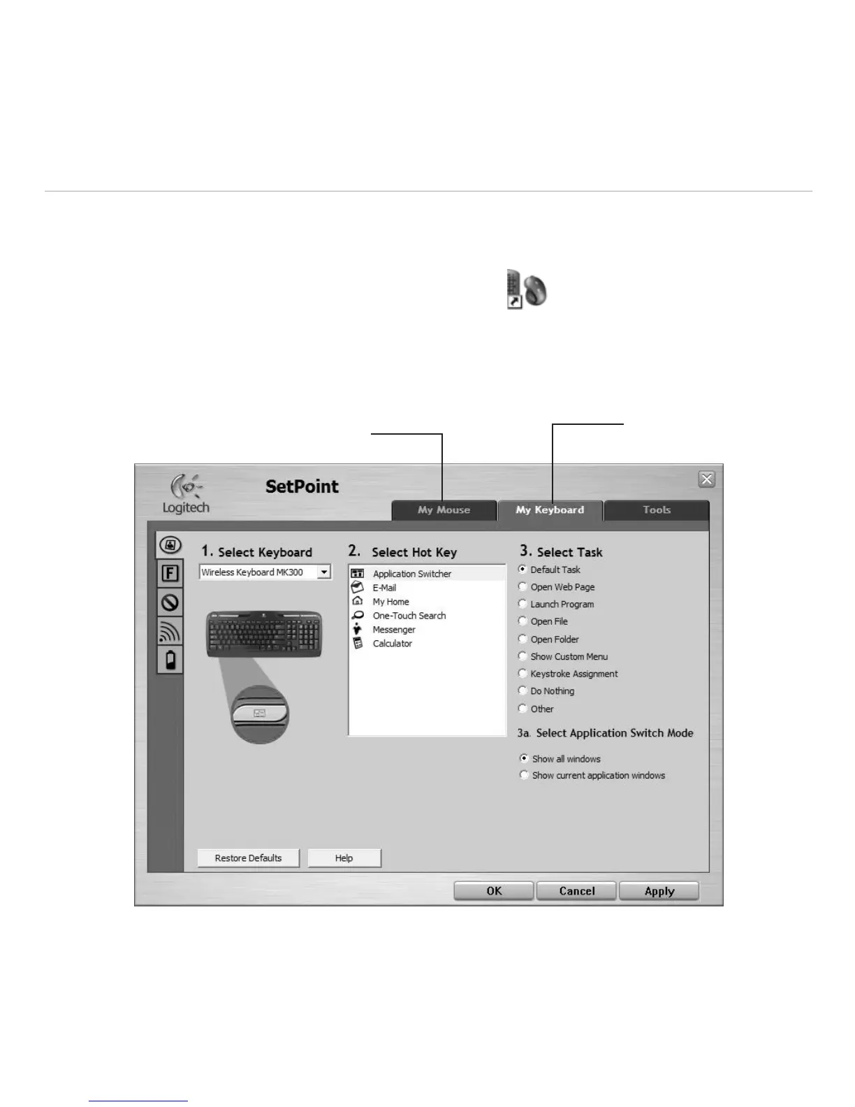 키보드를 사용자 지정하려면 2. My Keyboard( 키보드) 탭을 클릭합니다. 마우스의