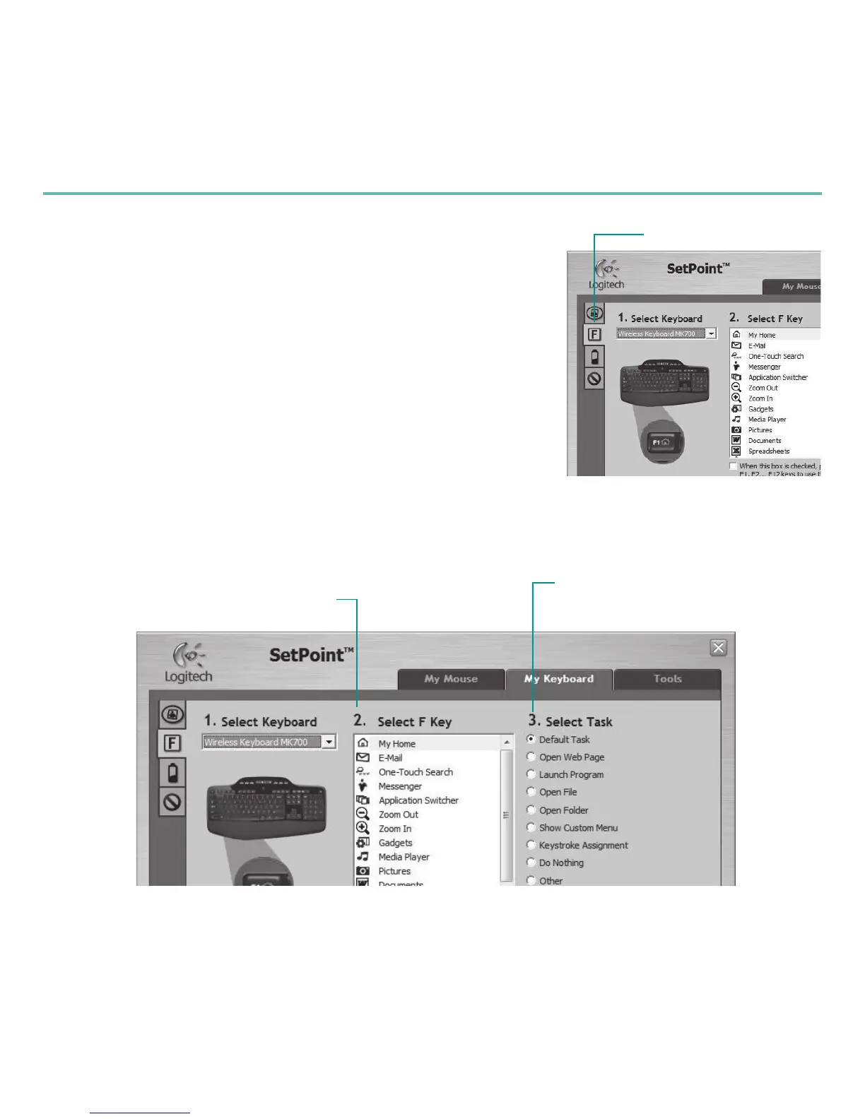 Onglet Paramètres des touches F du clavier