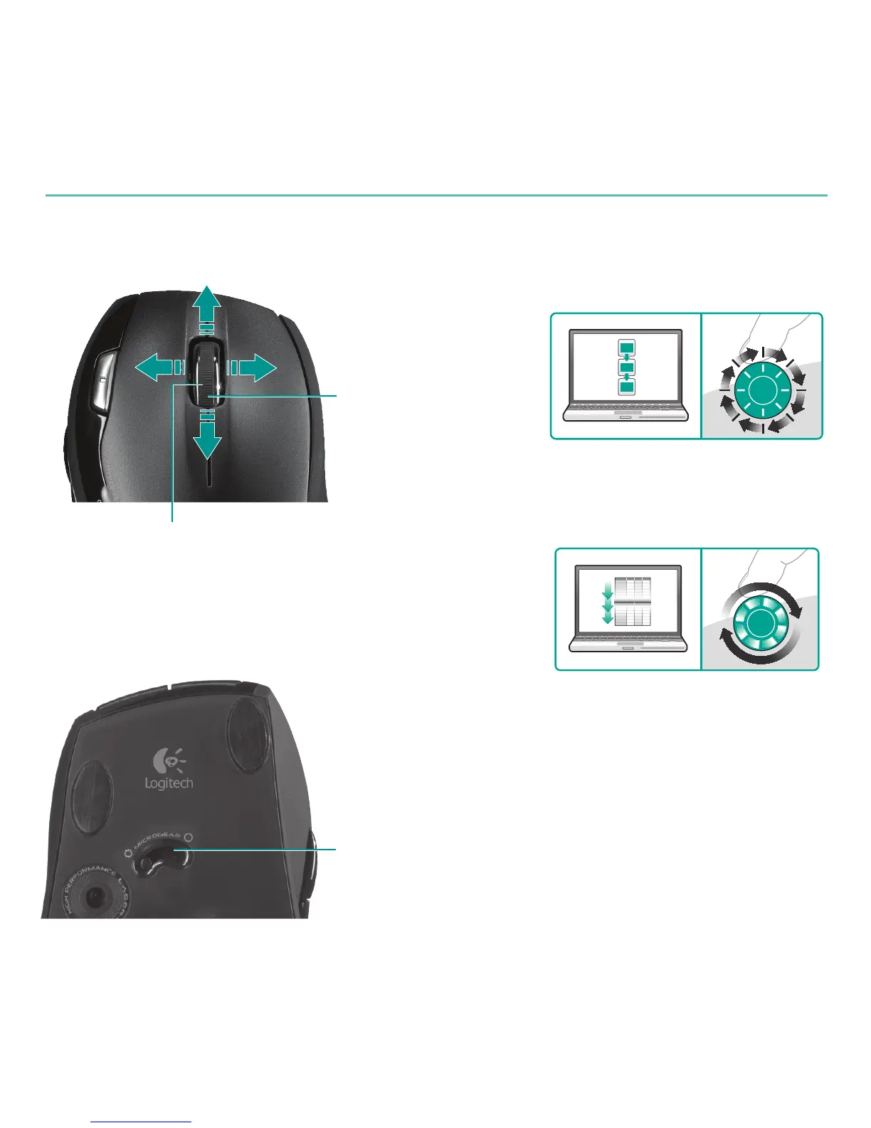 Incline a roda para efetuar rolagem lado a lado (horizontal)