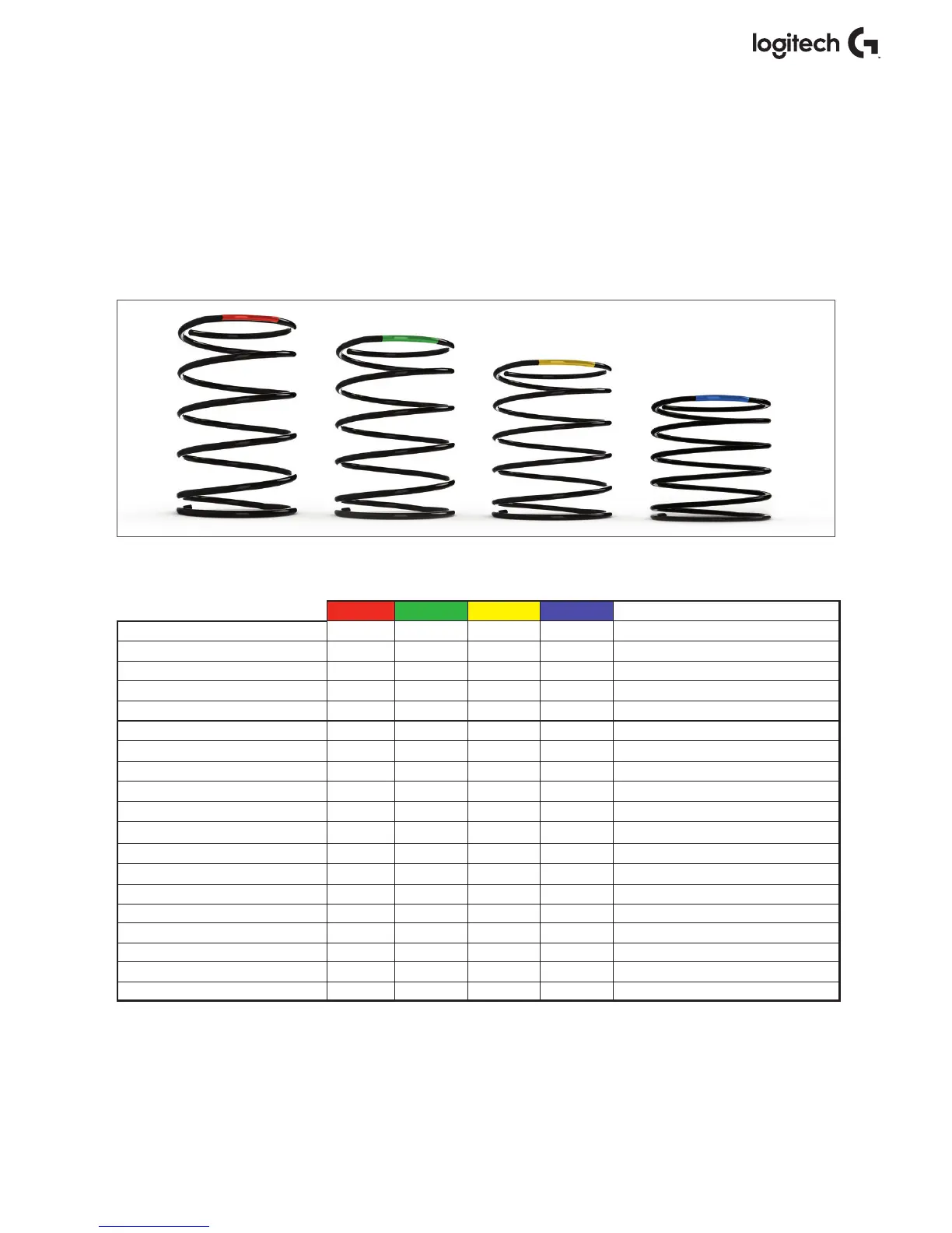 sonmuestras de color en la parte superior de cada resorte: Rojo, Amarillo, Azul y Verde.