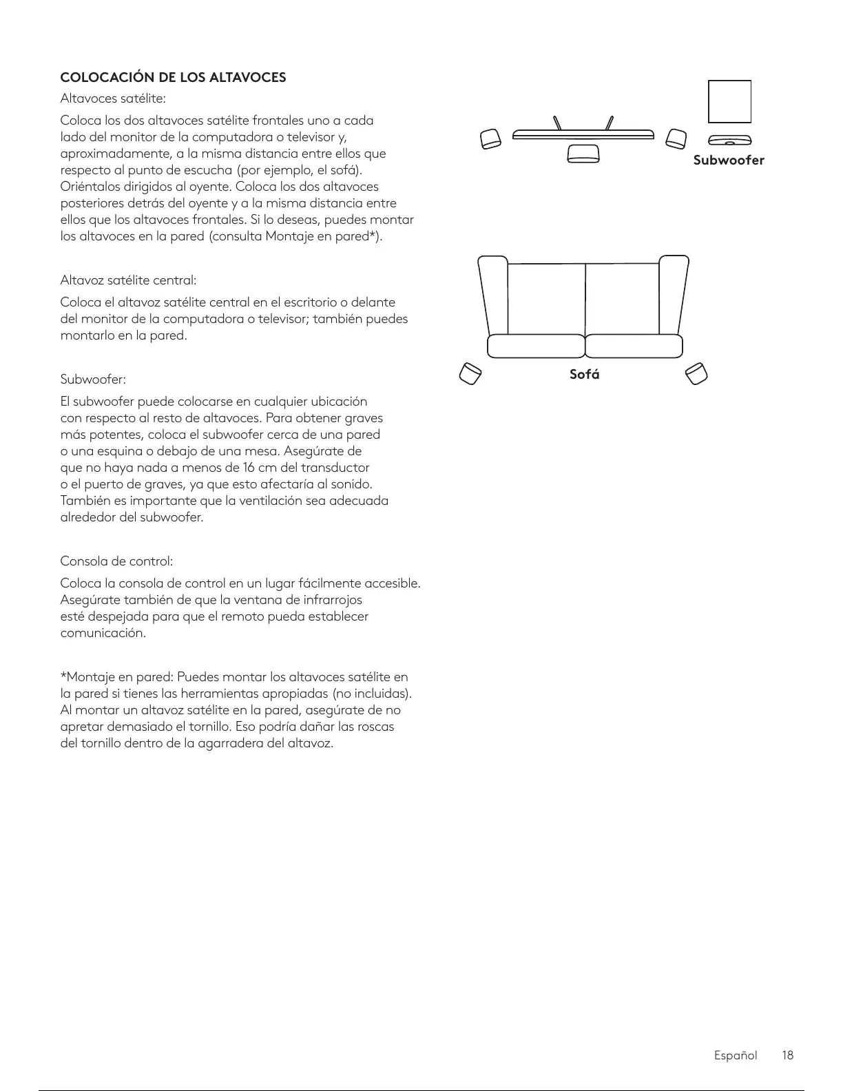 *Montaje en pared: Puedes montar los altavoces satélite en