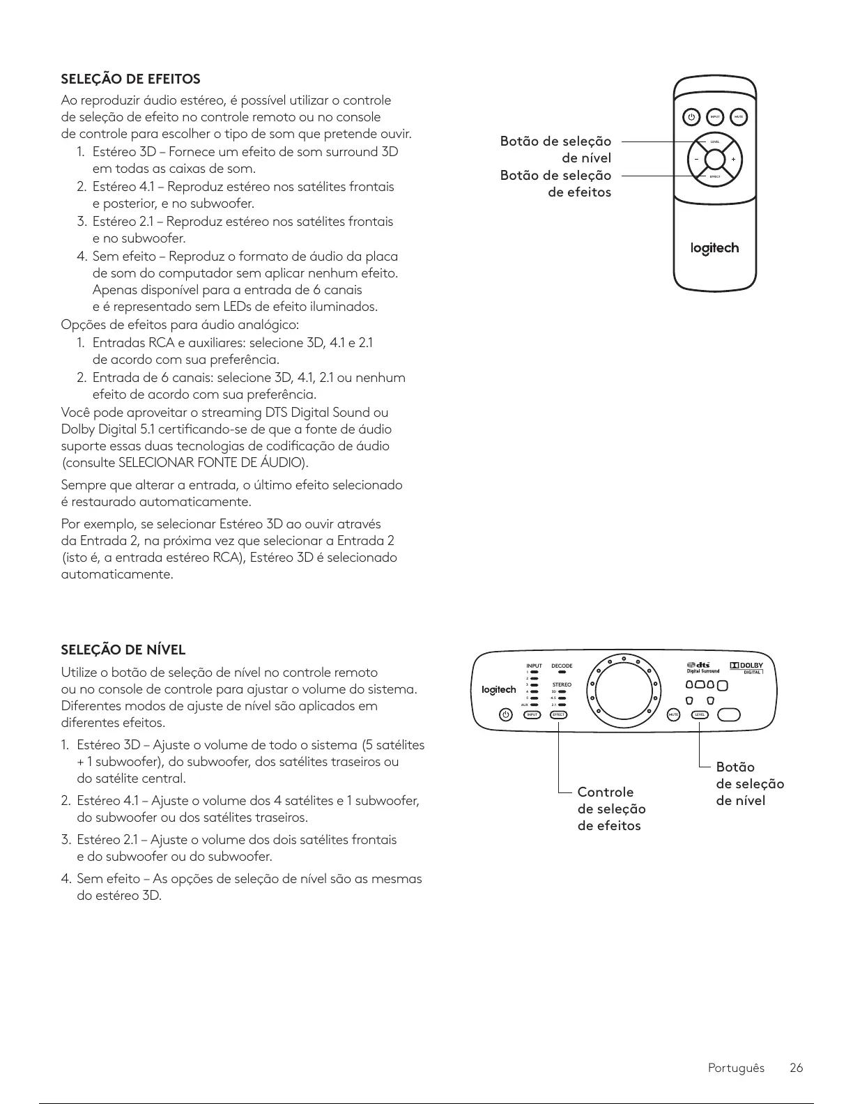 2. Estéreo 4.1 – Ajuste o volume dos 4 satélites e 1 subwoofer,
