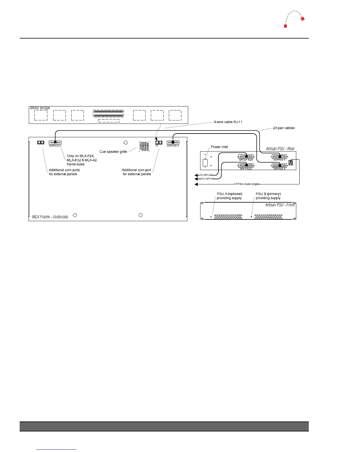 For all Artisan frames, two 25-pair Telco cables connect the Power Supply Unit to the Surface.