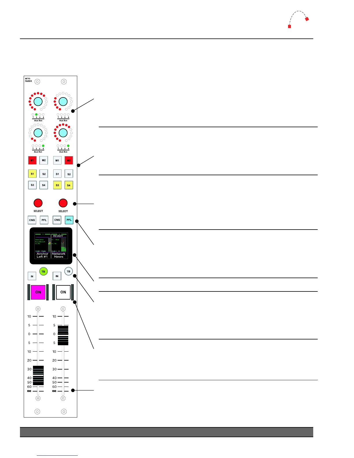 Each input can simultaneously feed any two of the four Aux Mix busses.