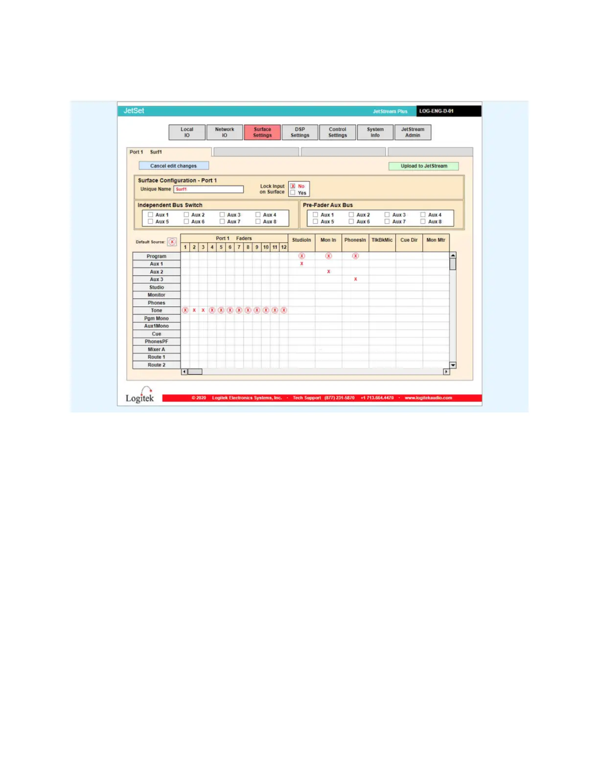 as program, aux, mix minus, and the built in tone generator. The lines in blue are local inputs.