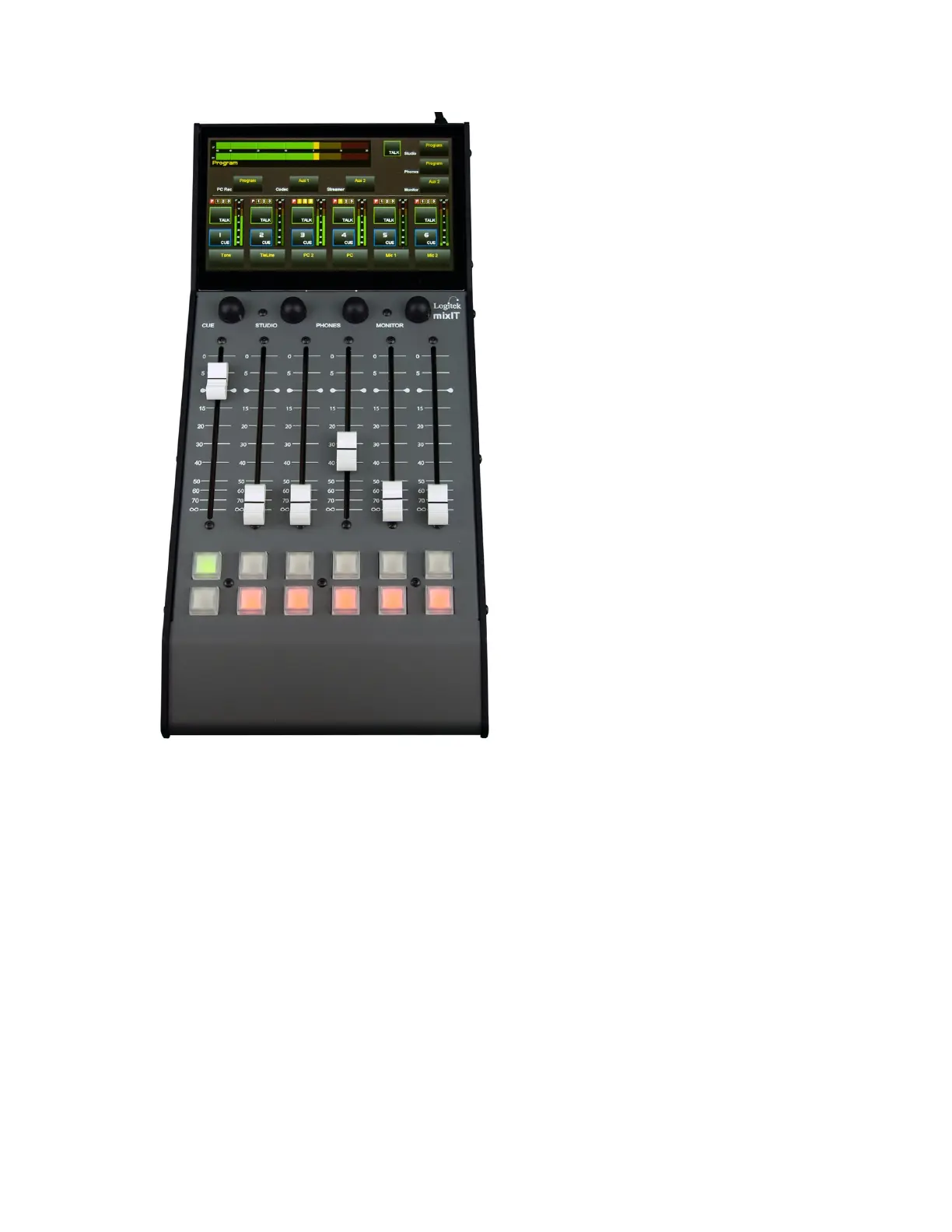 • 6 fader touchscreen controlled audio console