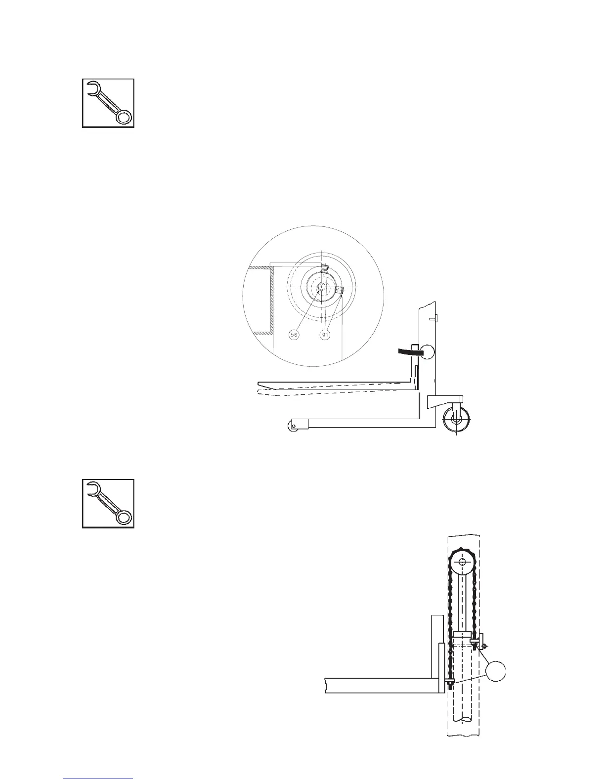 2. Eccentric pin pos. 56 (8 mm a/flats) can now be turned to