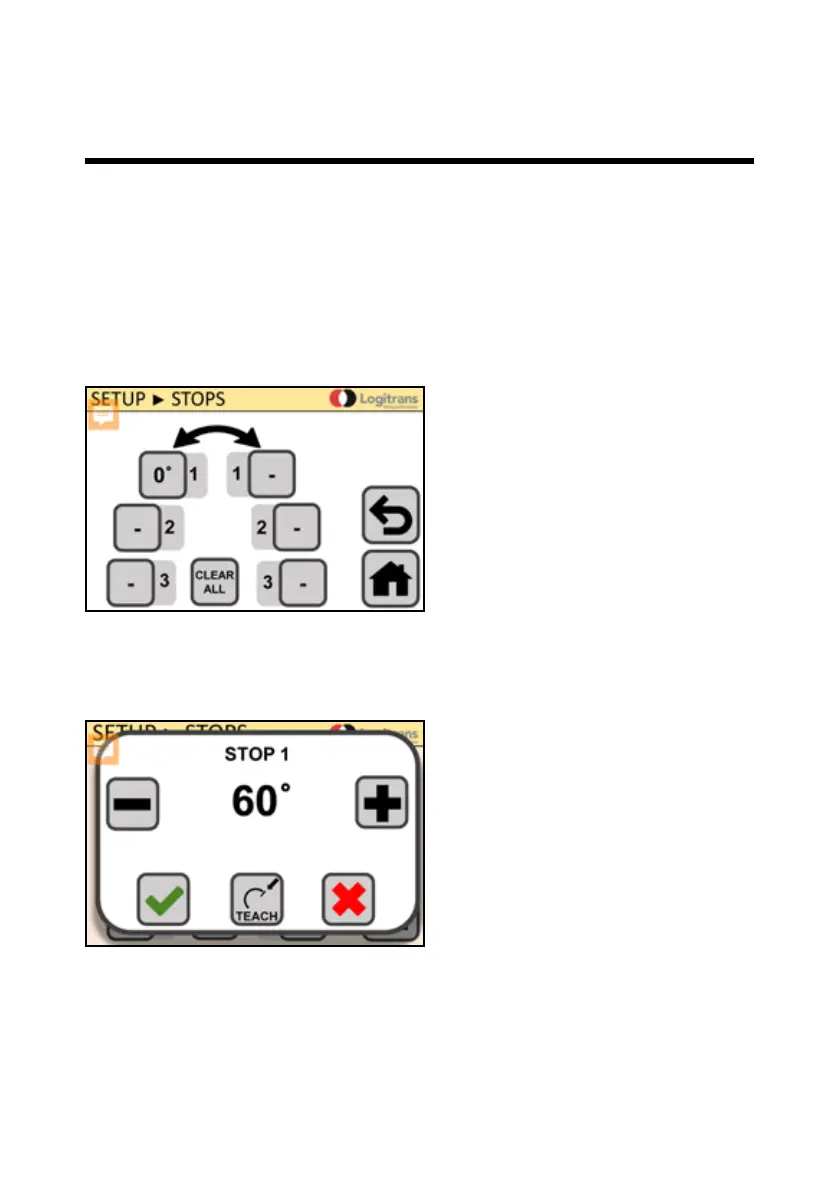 At the Stops menu, press “CLEAR ALL” to delete all set stop positions/angles.