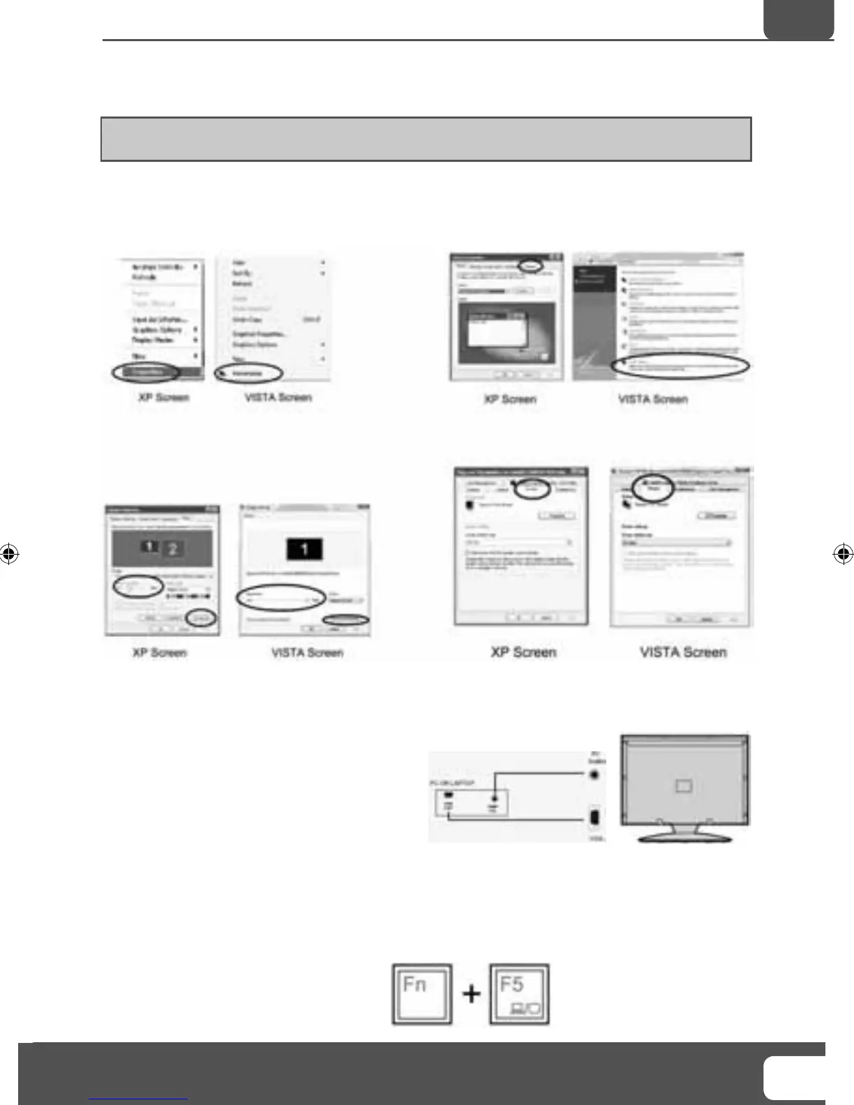How to set up for Windows XP & Windows Vista (connecting via VGA cable to the TV)