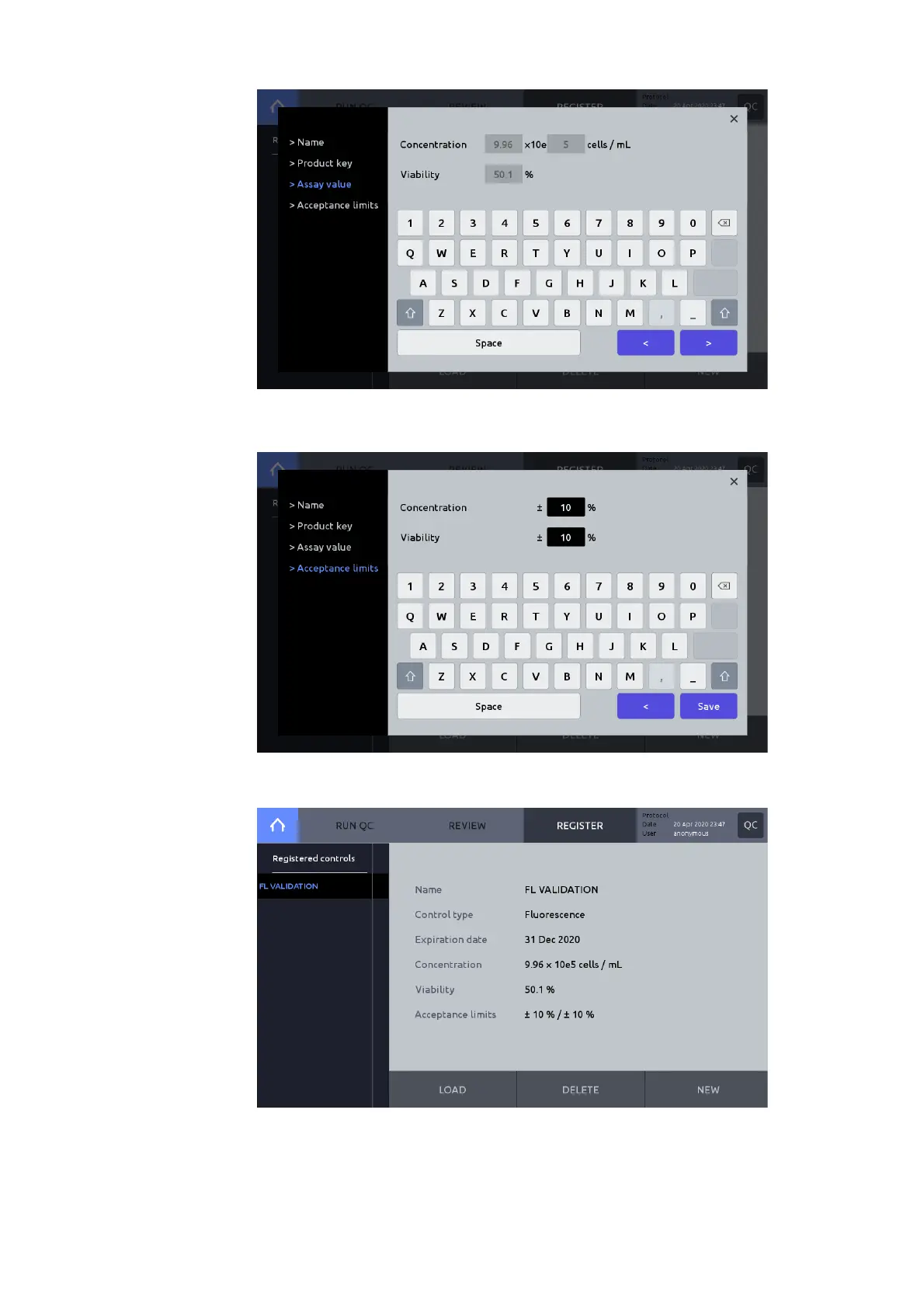 Set Acceptance limits (%). Acceptance limits produce upper and lower boundaries in QC