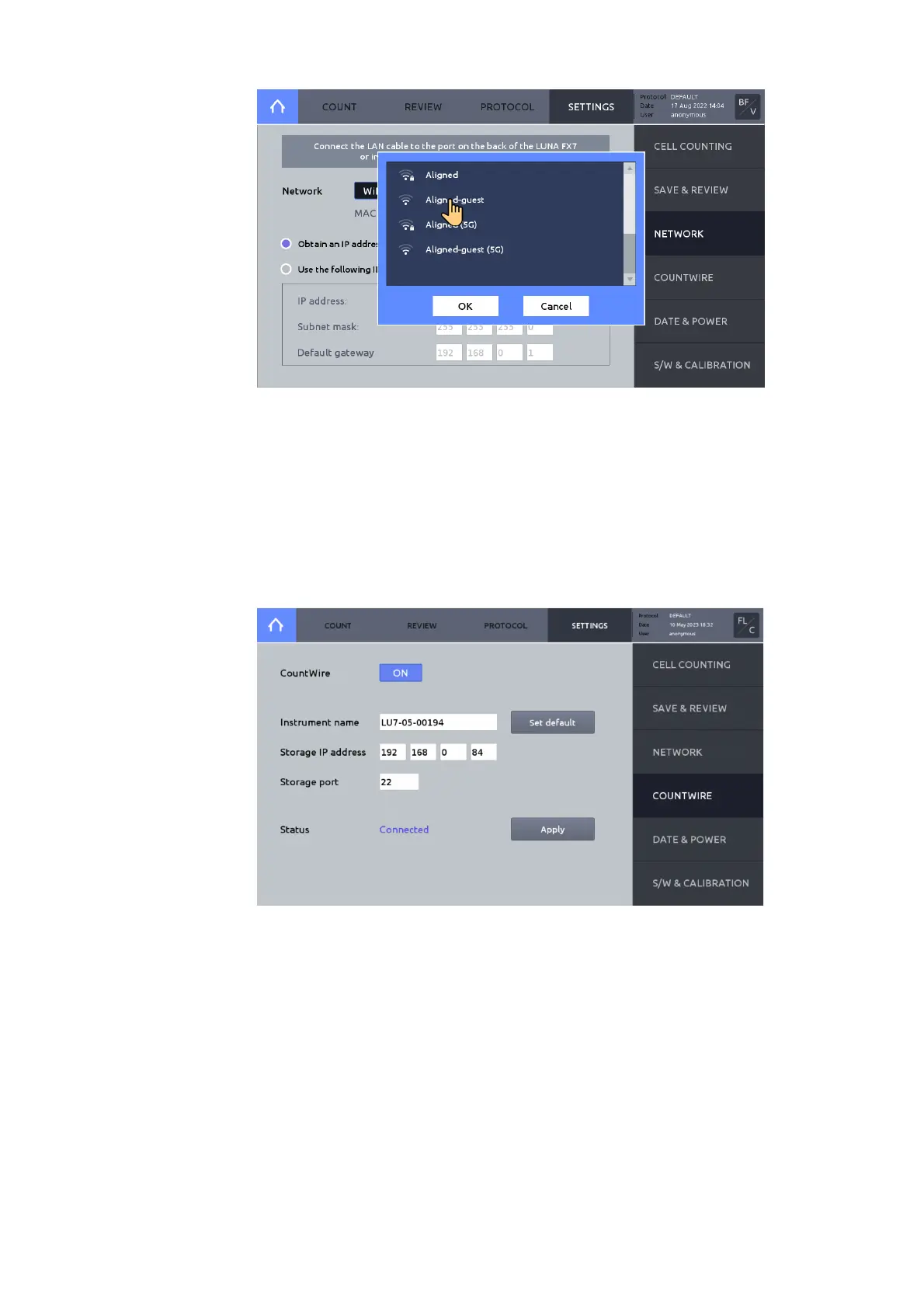 ! Important ! If CountWire is on, data transfer via network by FTP does not work.