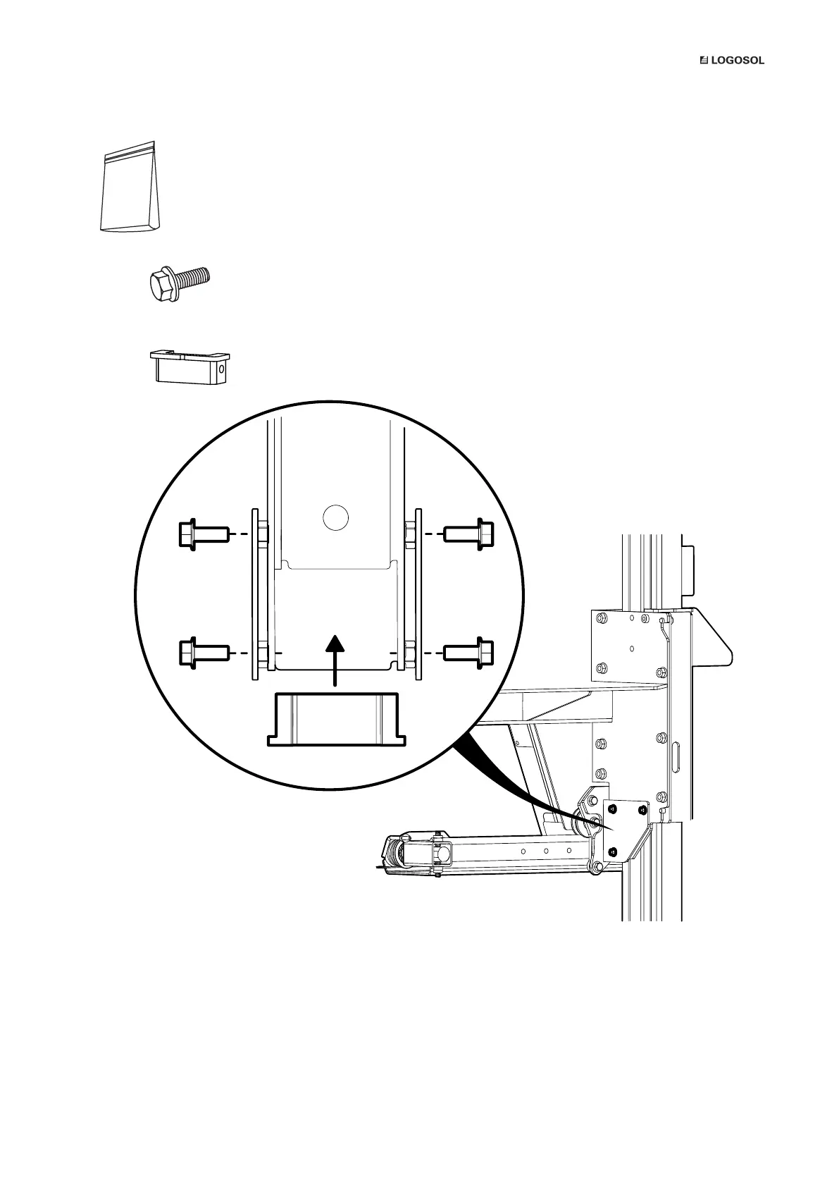 6. Enter the pylon bushing from below and attach it to the sides.