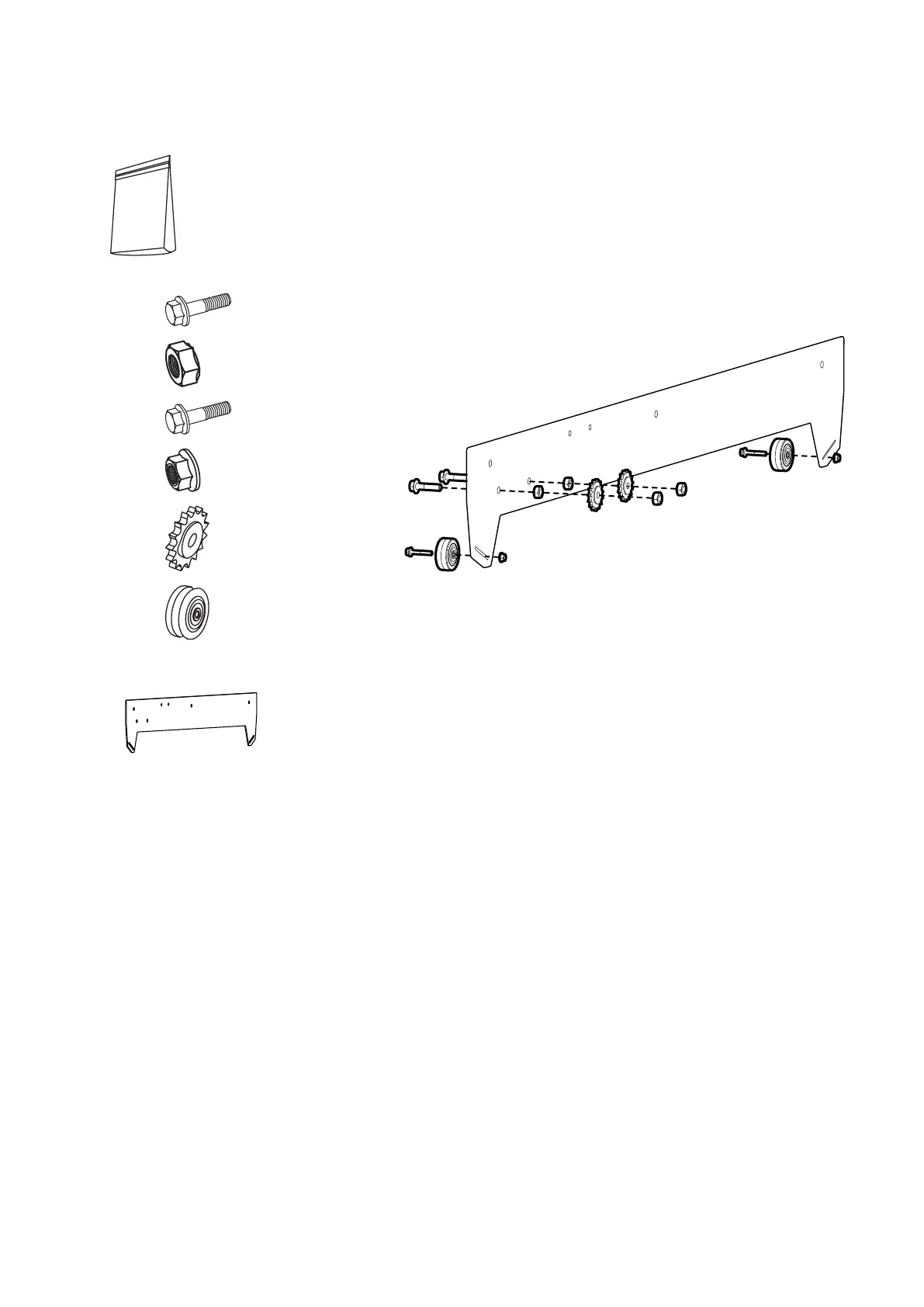 2. Fit the wheels and the cogs to the anti-tip plate.