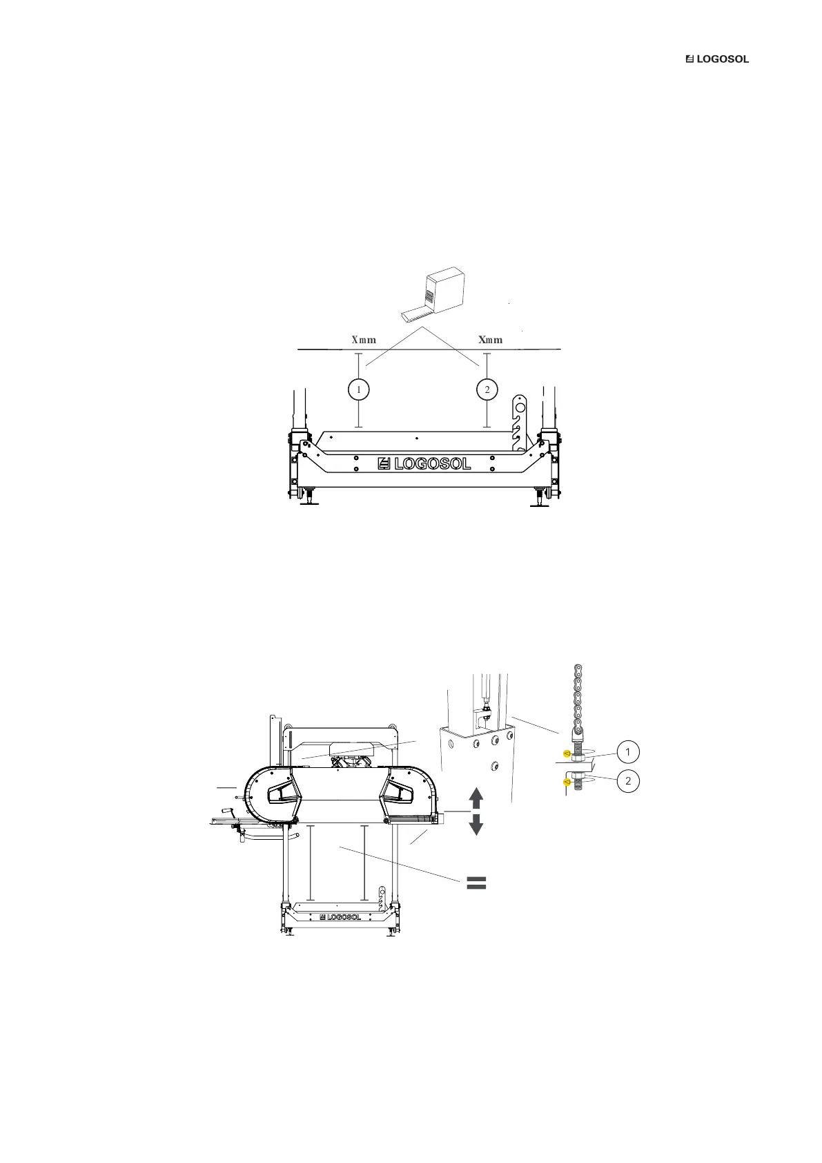 To ensure a good sawing result, it is important that the band blade is parallel with the cross bunks.
