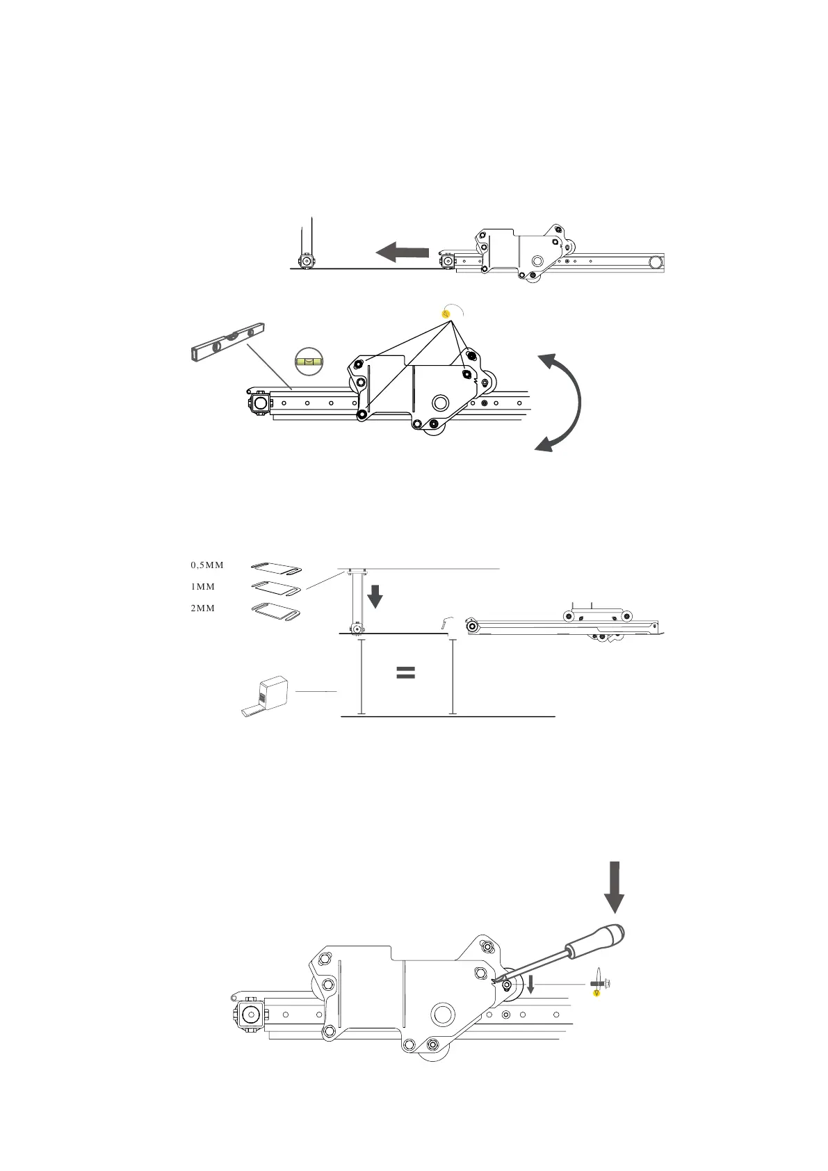 blade guide rollers. Then, bring the blade guide with guard to its innermost position. Place a spirit level on