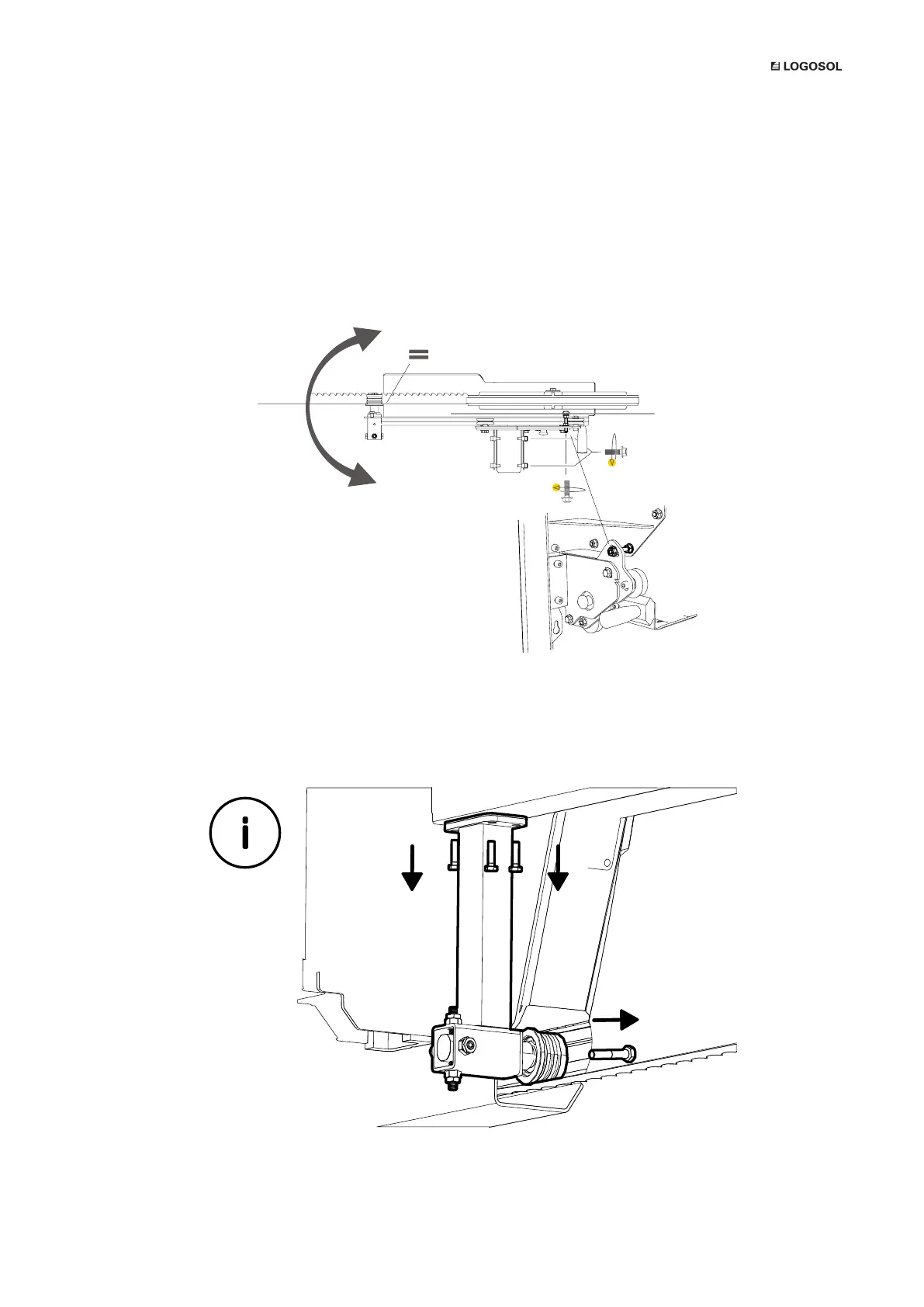 on the outside of the blade guard holder. Then, adjust the parallelity using the adjusting bolt on the rear