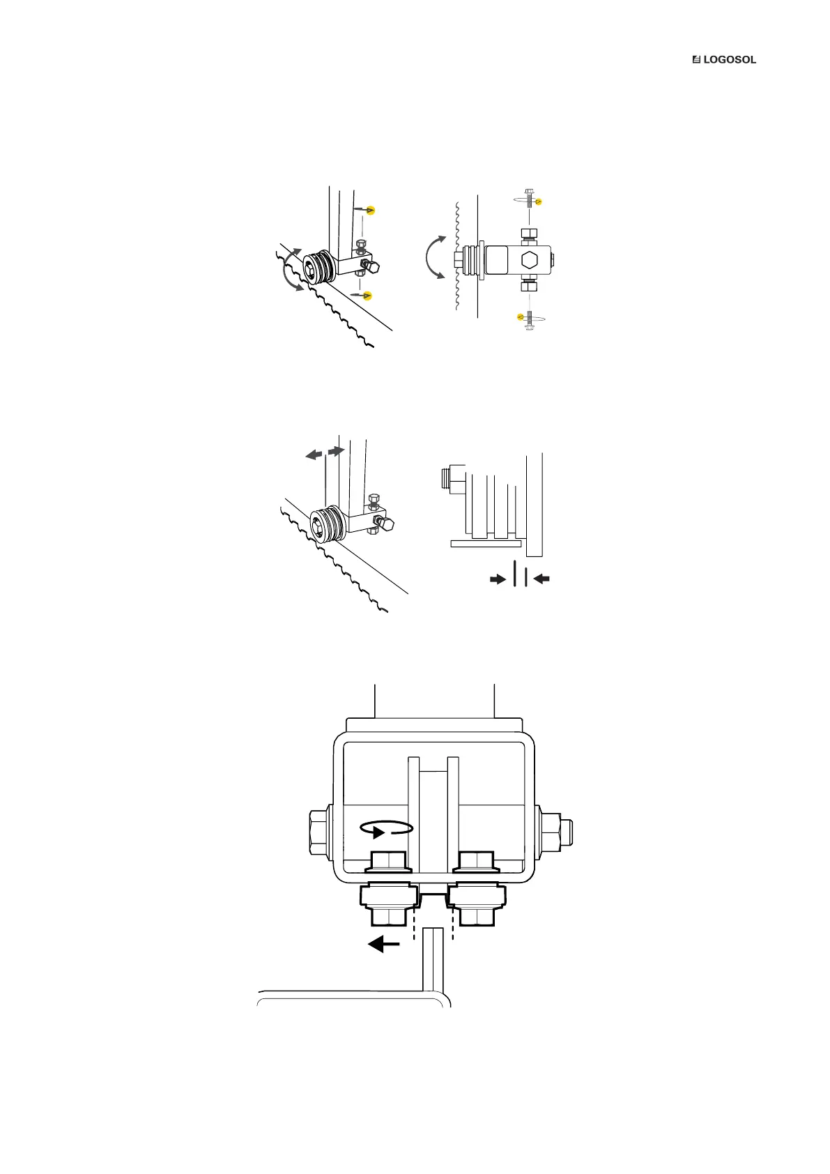 blade. This is done by adjusting the outer and inner adjusting bolts. It is crucial that the blade guides run parallel