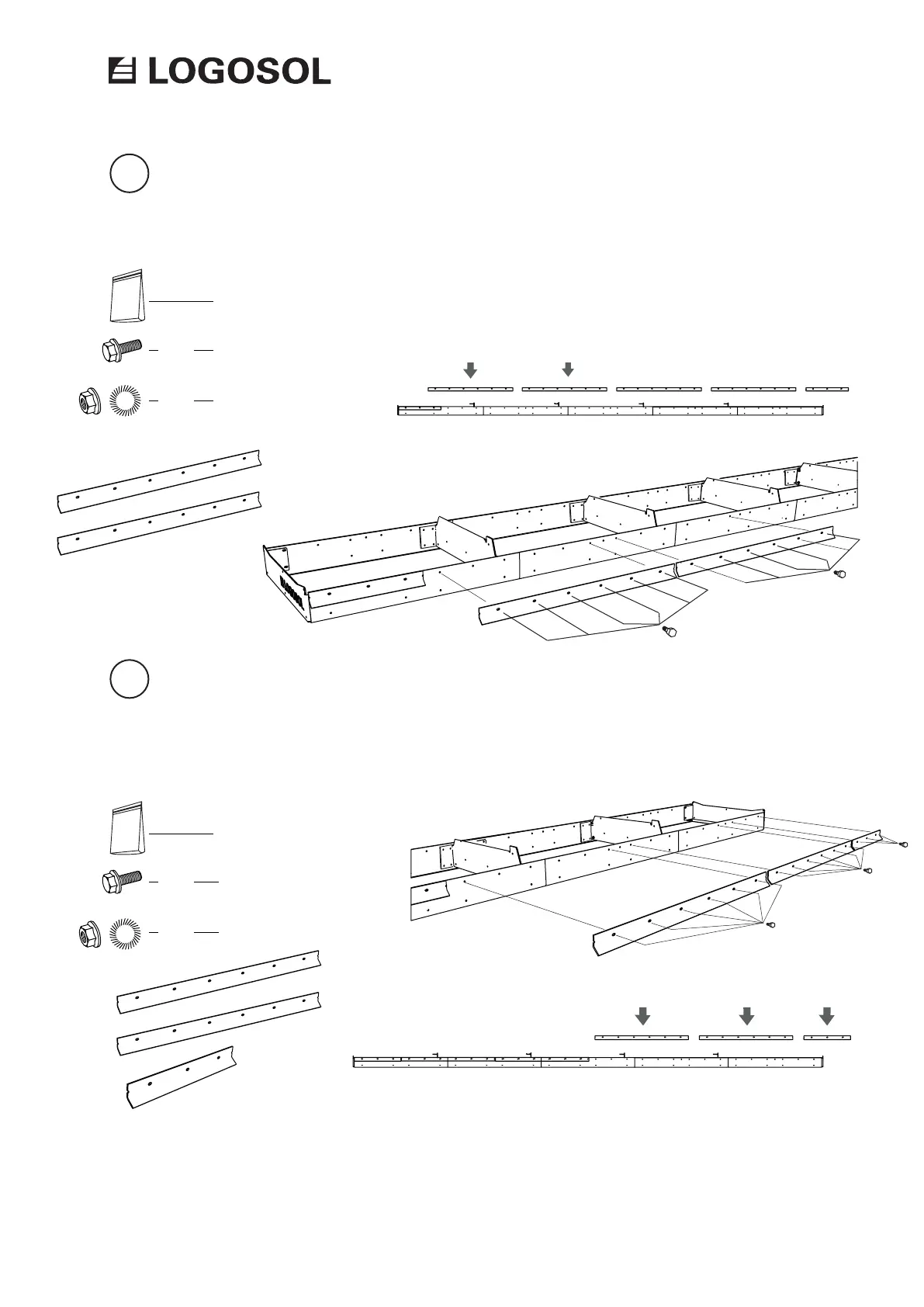 Fit the next two pieces of rail. Tighten the screw joints loosely.
