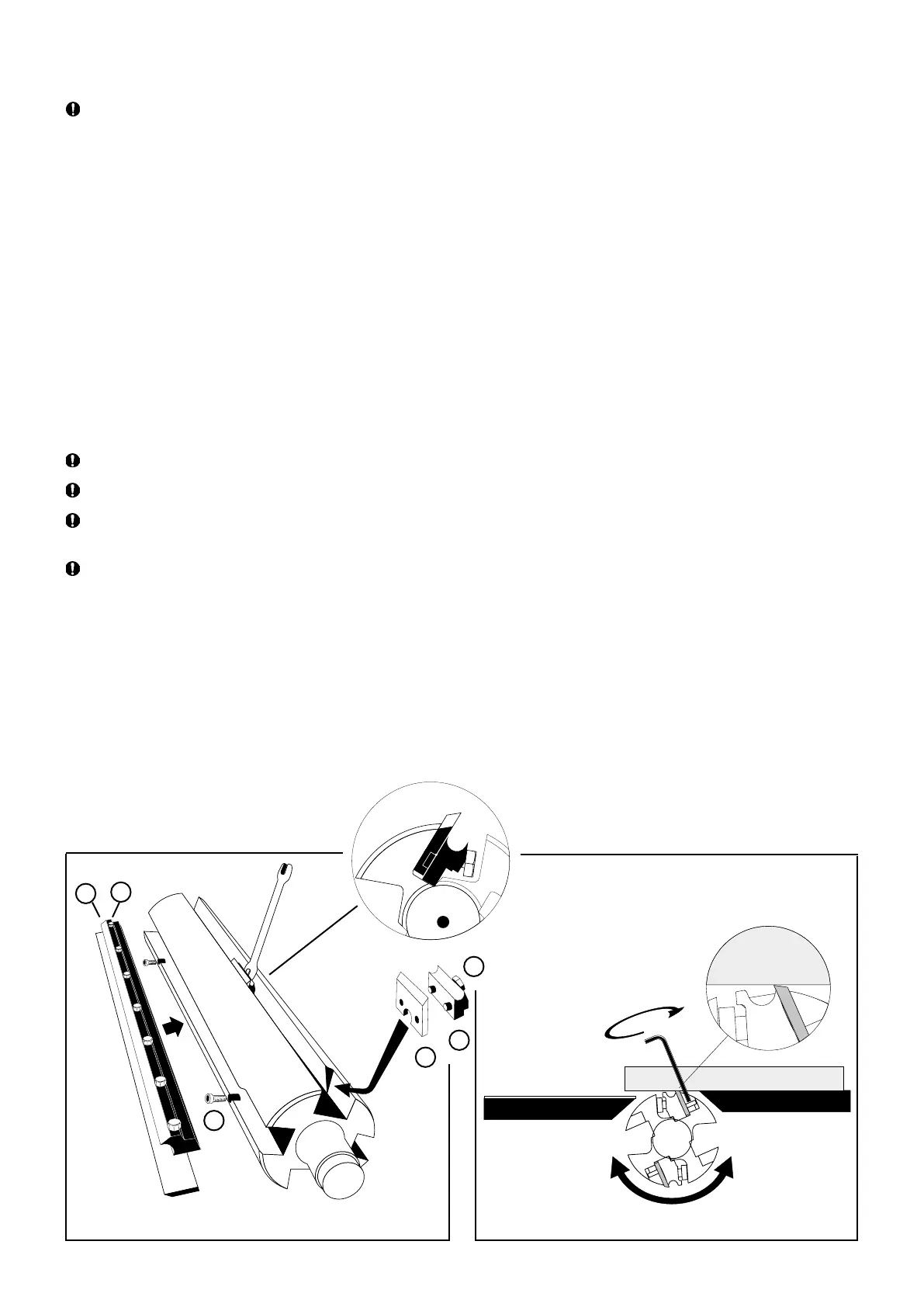 a 4 mm Allen key (supplied). The knives should protrude 1