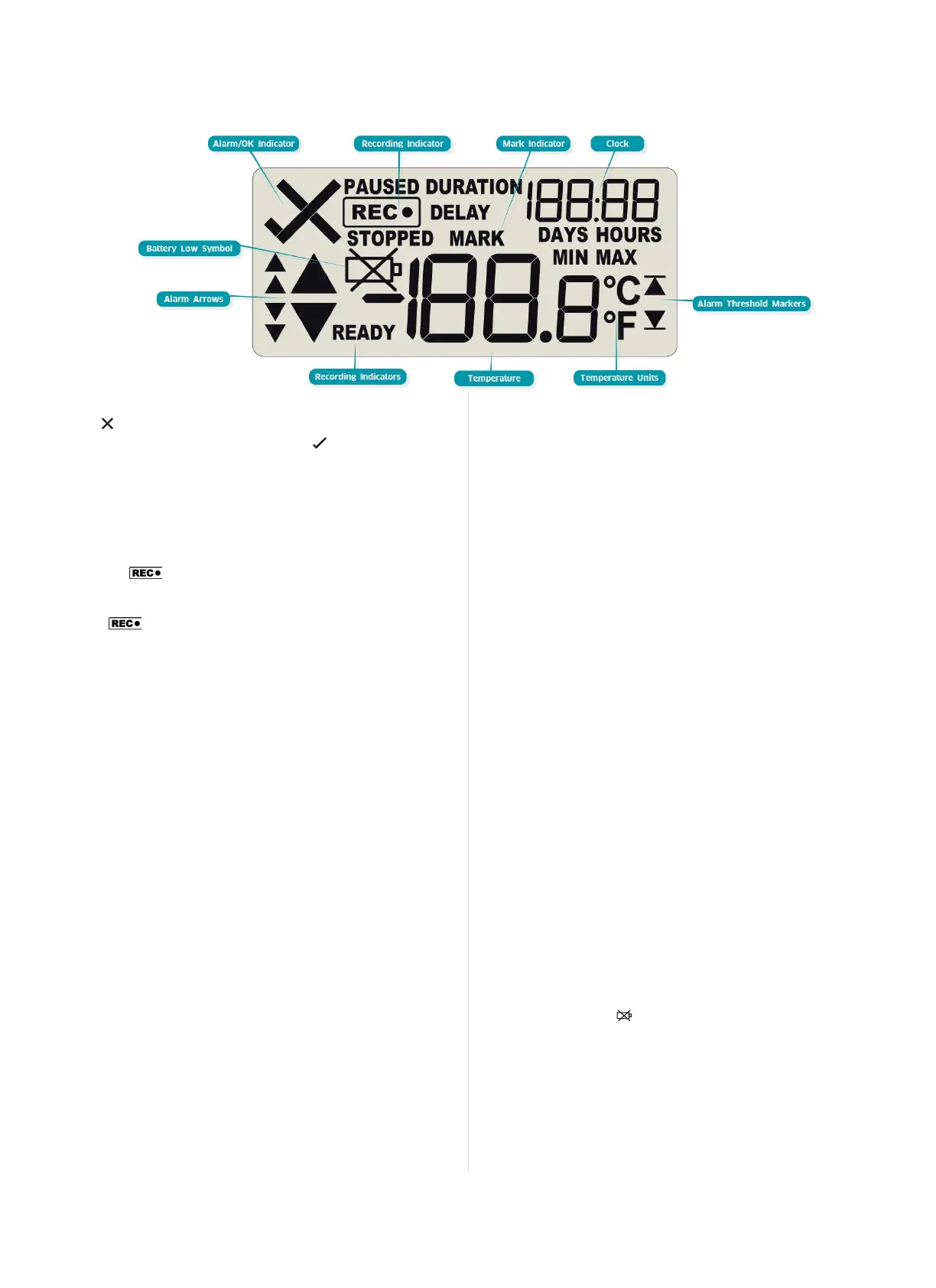 specified upper temperature limit. The down-arrow is shown when