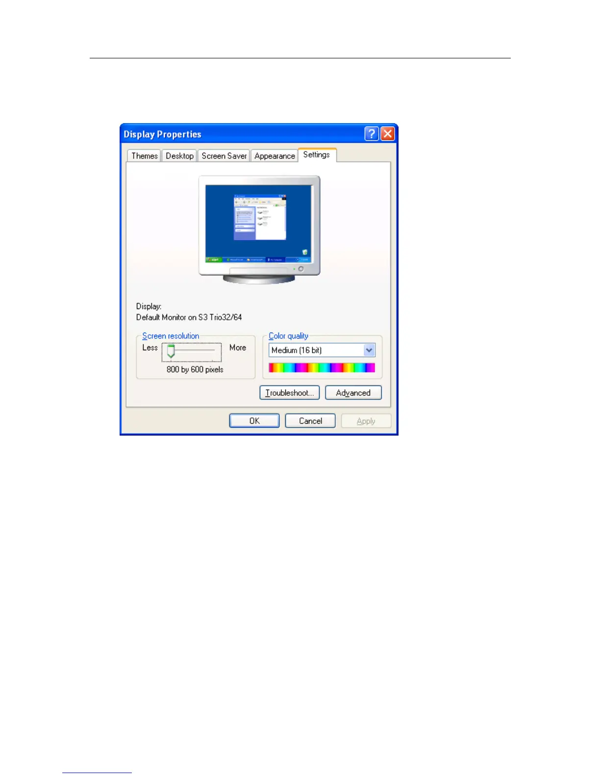 d) From the "Settings" portion of the "Display Properties" window you will see your