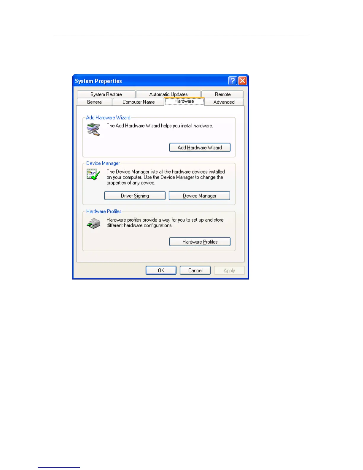 6 If your system properties looks similar to the following picture, click the "Hardware"
