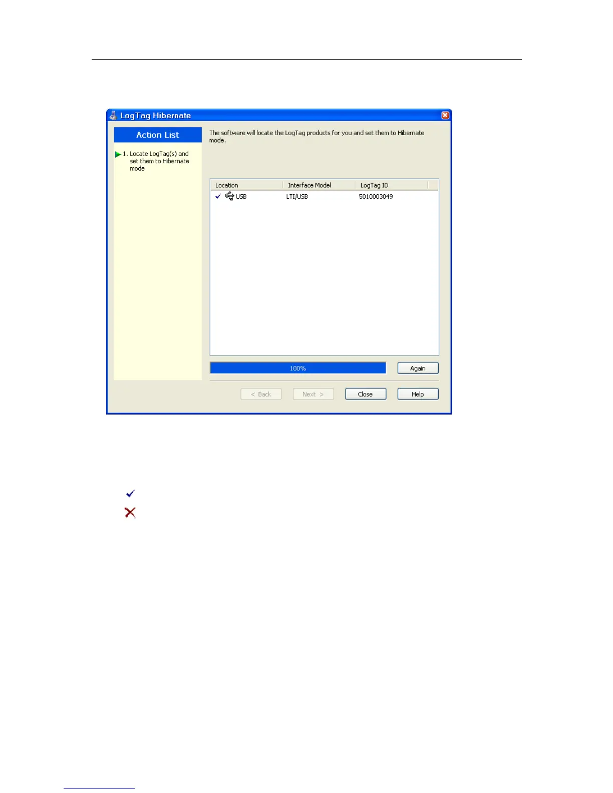 (no picture) indicates the LogTag is still in the process of being set to "Hibernation"
