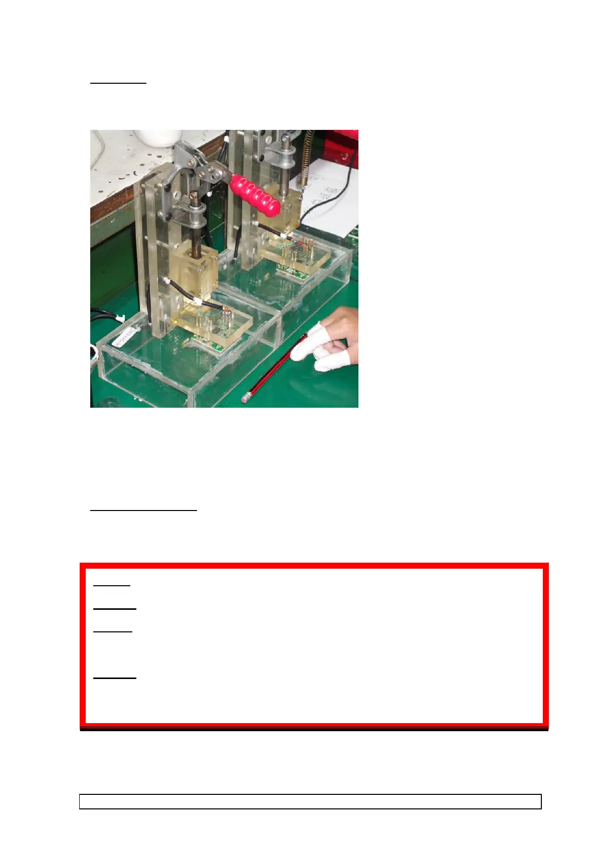 1. Place PCBA into test fixture. Test should automatically run. Ensure PCBA is placed the correct way
