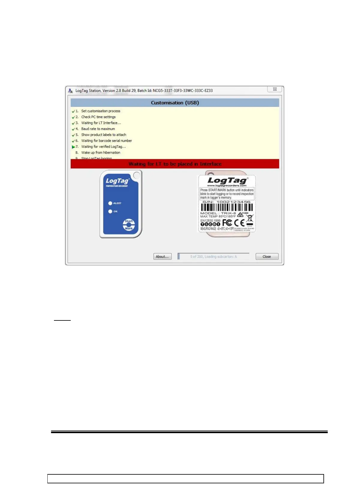 Display will then display the ‘waiting for LogTag’ screen detailing the labels to attached.
